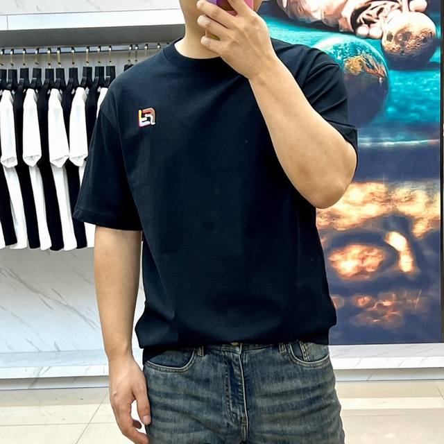 Fendi, a hot-selling short-sleeved T-shirt from Spring 2025. Made from custom-made plain-knit cotton, this fabric boasts a generous weight, a firm and soft feel, and a crisp, stylish texture. It exudes a sense of luxury and comfort, both tactilely and visually! The stylish embroidered double-F logo on the chest showcases a unique and captivating personality! This style is both fashionable and elegant, maintaining its unique flair regardless of changing trends, adding a touch of casual individuality and making the shirt even more dynamic. Model 48-56, 173cm, 143kg, wearing a size 50.