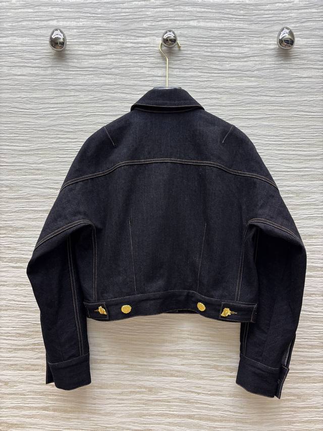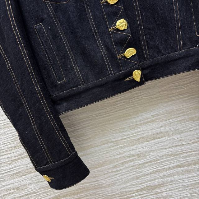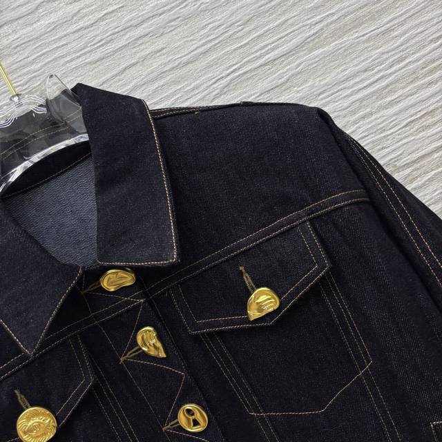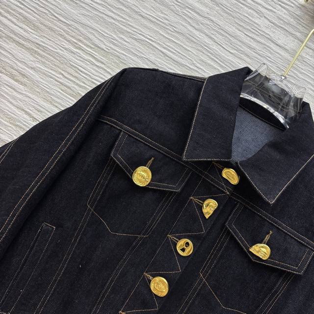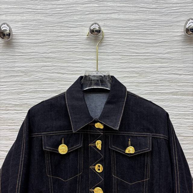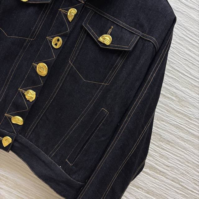 Four sizes Smlxl Sch home 25 spring and summer fashion blogger Xiaobai same style various buttons retro denim short jacket open mold metal buttons each button is different oh gold button dot eye-catching and very cool cool shoulder short version of the upper body is very body proportions can be sweet or salty temperament fashionable and handsome version is not picky all-match upper body super slim custom visible line retro washed denim fabric delicate and soft texture