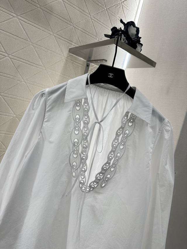Gucc*2025 New Arrival: Embroidered silhouette shirt and shorts set, custom YB twill cotton material, refined, crisp, and stylish. The lapel shirt and shorts set features a deep V-neck opening that reveals the collarbone, adding a sweet and sexy touch. The laces complement the embroidered pattern on the front cuffs, creating a French manor holiday feel. The loose silhouette is stylish and feminine, and pairs well with the matching shorts. The water-soluble embroidery on the trouser legs complements the look, creating a stylish and versatile outfit. It also looks great worn separately, making it a stylish and versatile set. Custom fabrics and accessories are available. Look for the high-end version, tops cost 310, shorts cost 230.