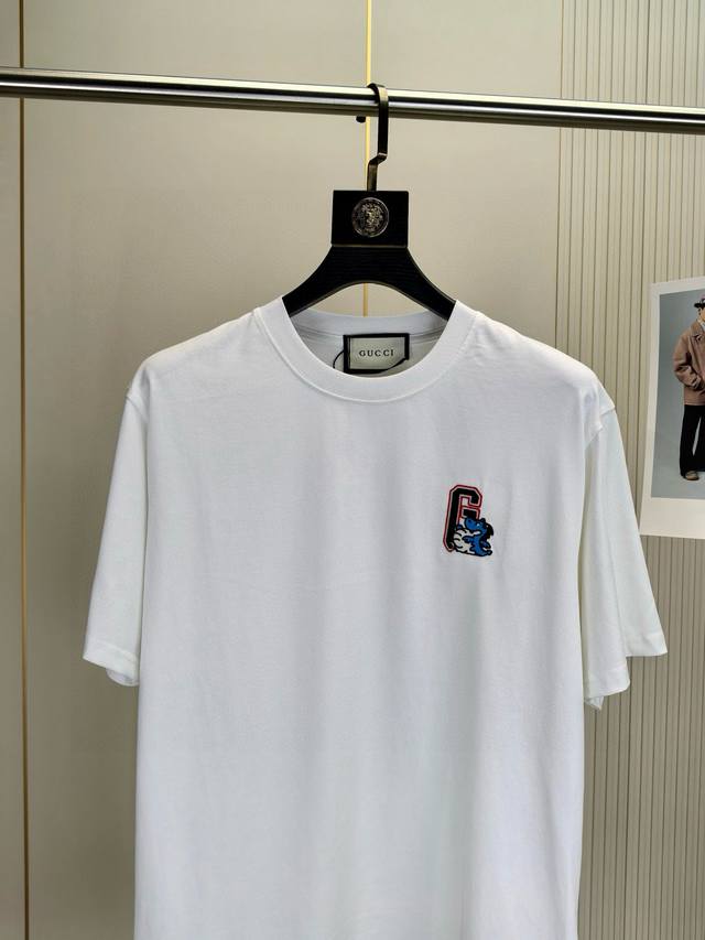 Gucci, Spring/Summer 2025 new arrival! This stylish, round-neck, short-sleeved, high-end custom-made style is versatile and practical, making it easy for anyone to wear. Made from 95% cotton and 5% Tencel fabric, it's incredibly comfortable, pill-resistant, and retains its shape. The luxurious, classic logo design makes it a must-have for discerning buyers! The loose fit makes it a perfect choice for both men and women! It creates a striking and refined look, a unique combination that creates a striking effect. Sizes: S-XXL. The model is 173cm tall and weighs 145kg, wearing a size M. Sizes up to 200kg are acceptable. A great treat for those who weigh more than 500kg!