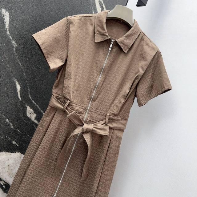 Her 25Ss Spring and Summer New Products Official Website Synchronized H Dark Pattern Jacquard Small Lapel Zipper Dress Positioning Pleated Treatment Very Textured Simple and Atmospheric Without Losing Delicate Feeling Casually Tie a Belt to Wear Super Slimming Lazy Essential Simple and Elegant Not Picky Casual Handsome Single Item Imported Jacquard Cotton Poplin Fabric Everyone Can Wear Good-Looking Inclusive Sml
