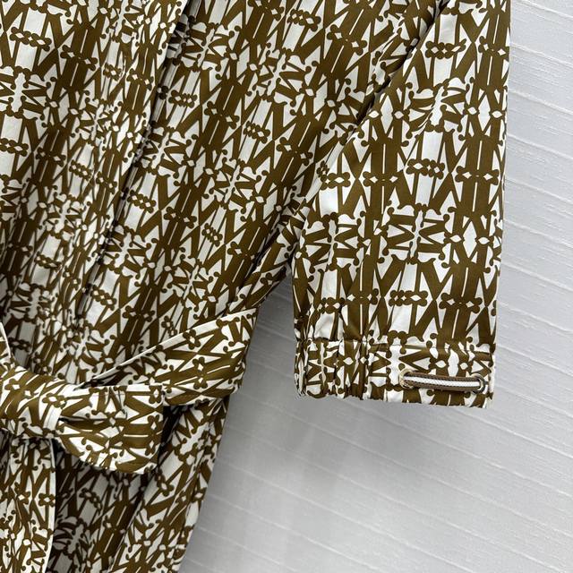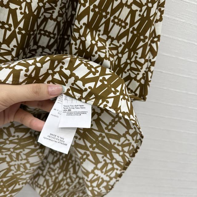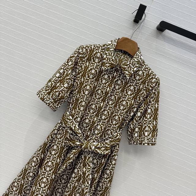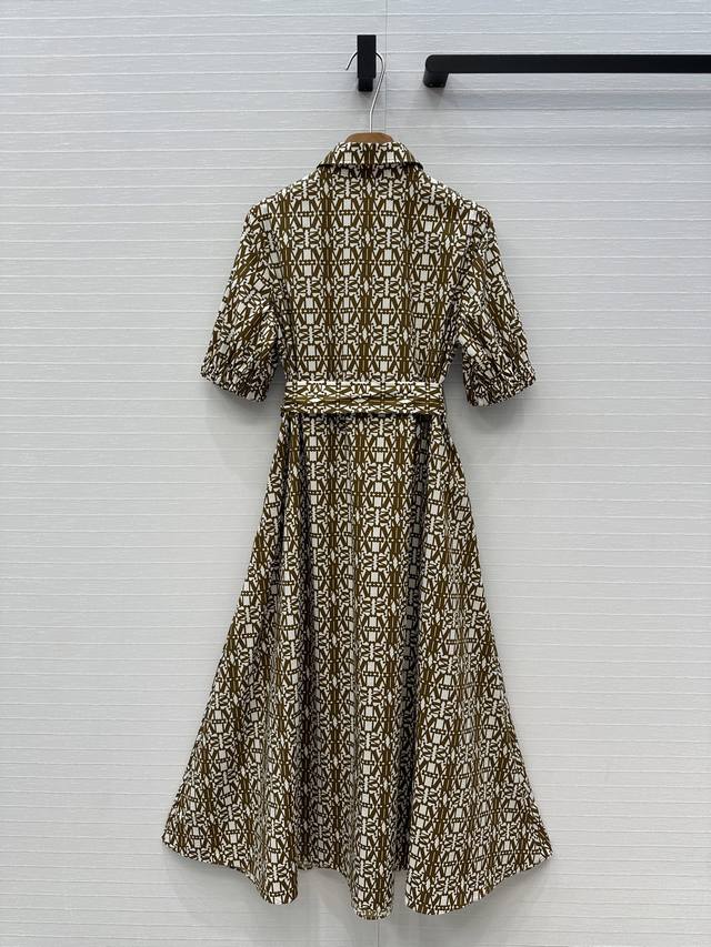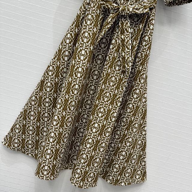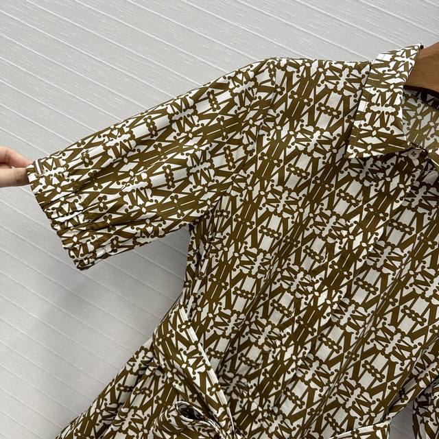 Highly recommend Max*'s new spring and summer low-saturation mocha color classic logo print collar dress, customized light and breathable cotton printed fabric, with a flared skirt style to show elegance, lantern sleeves with elastic bands to add retro fashion, built-in belt to outline the figure and add tough style, elegant, romantic, casual and versatile! One color, three sizes, size S, shoulder width 37, bust 92, skirt length 123. .