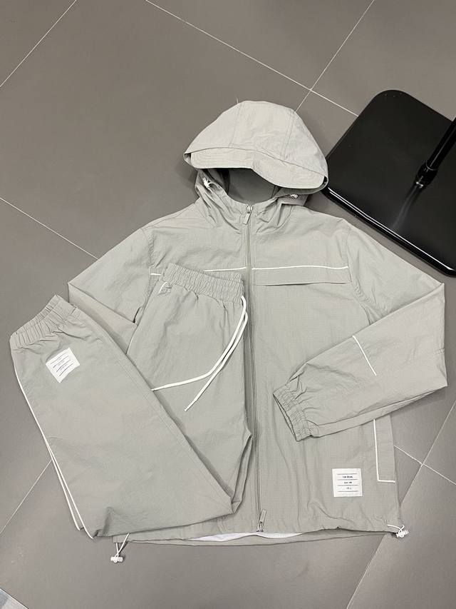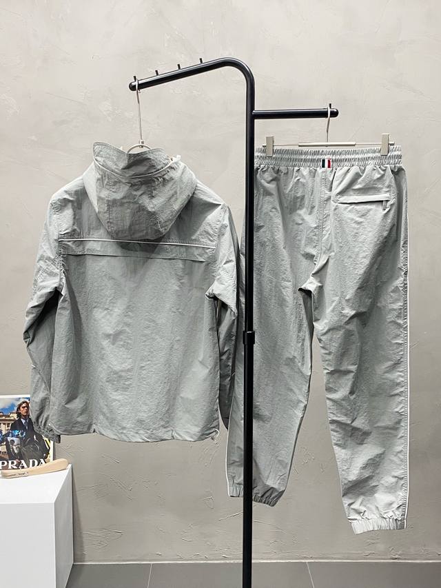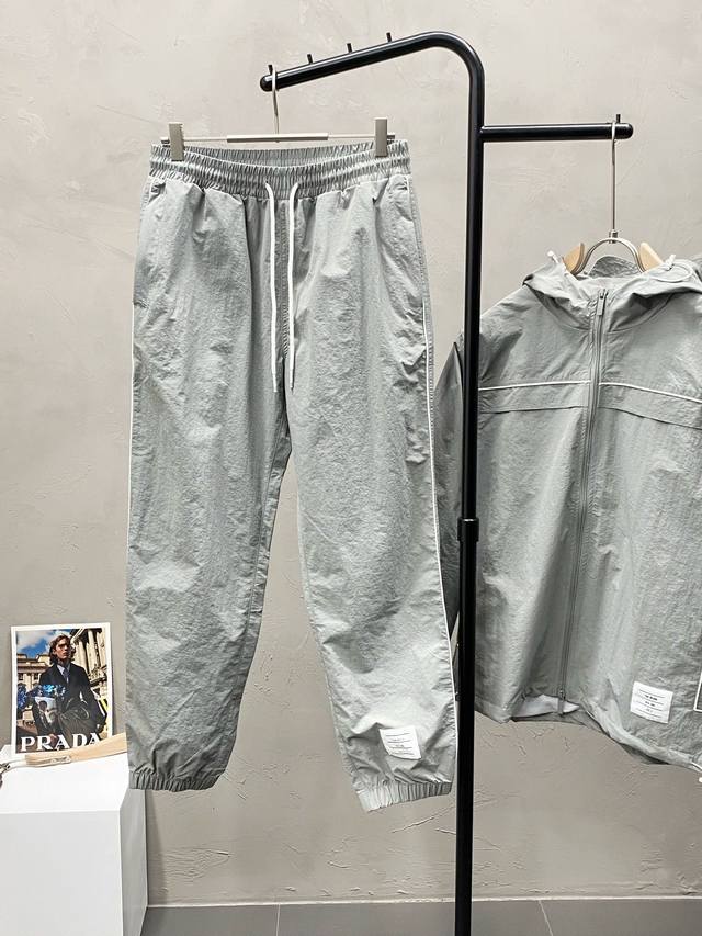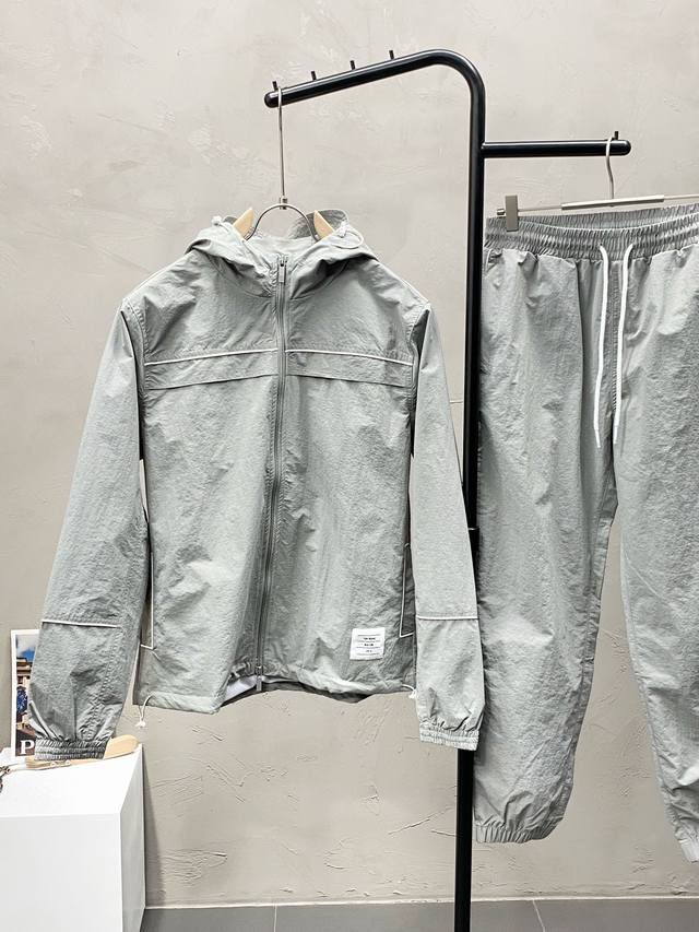 jacket and pants. Exclusively available from Thom Browne for the new spring/summer collection. Breathable, comfortable, and casual! A truly luxurious look! Exquisite details and impeccable workmanship. Original, high-end fabrics exude a premium feel! Crisp, wrinkle-resistant, and breathable, the fabric wicks moisture quickly and dries quickly for a clean, stylish look. Sizes 1-4