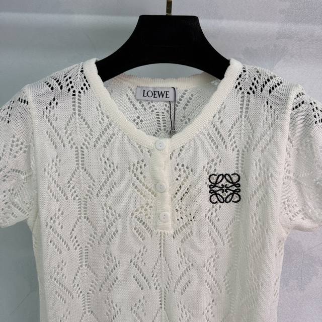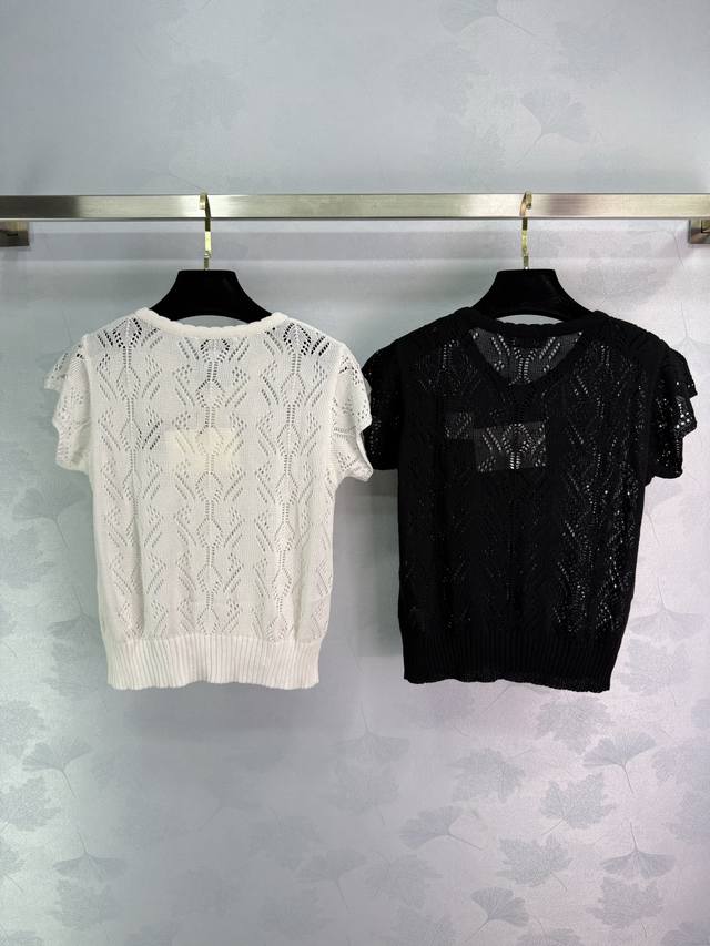 Loe* 2025 Spring/Summer new knit short-sleeve top with exquisite hollow craftsmanship and chest logo embroidery, effortlessly showcasing a playful, feminine style . Perfect for all seasons! Available in 2 colors and 3 sizes (Sml T226B).