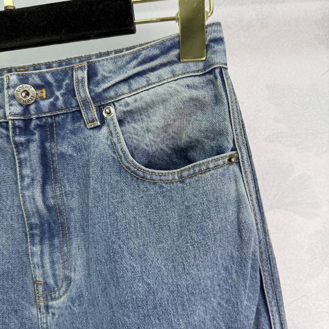 Loew*2025 new arrivals: gradient bleached denim jacket and trousers set. Custom Yb twill cotton denim fabric offers excellent breathability, a crisp and textured look. Lapel denim jacket and straight-leg trousers set. Enzyme-washing process creates a natural gradient. The bleached marks complement the contour lines for a more stylish look. Chest flap pockets are decorated with the same printed letters on the front. The lapels echo the lettered leather label on the back, highlighting the brand positioning and style. Paired with the same series of straight-leg trousers, the side slits on the trouser legs are unique, and the bleached washed details echo the top and bottom for a more coordinated look. High-end, fashionable and stylish, customized fabrics and accessories. Look for the high version, 1 color, 3 sizes Sml T226B