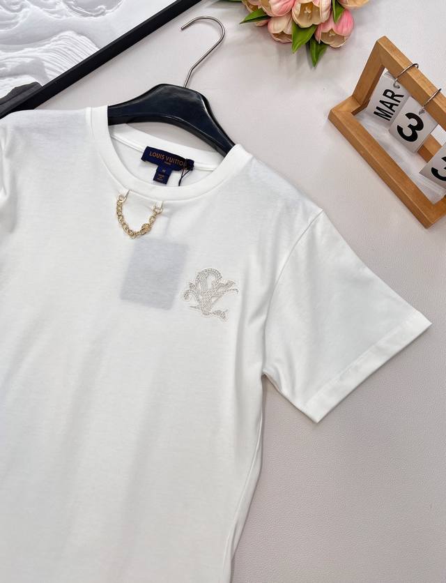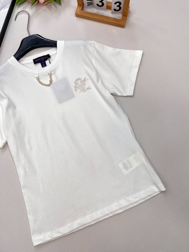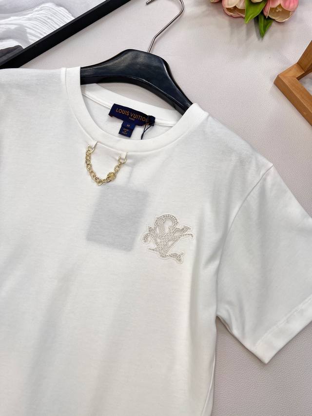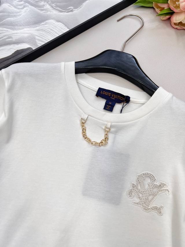Louis Vuitton 2025 new embroidered letter chain short-sleeved T-shirt, customize