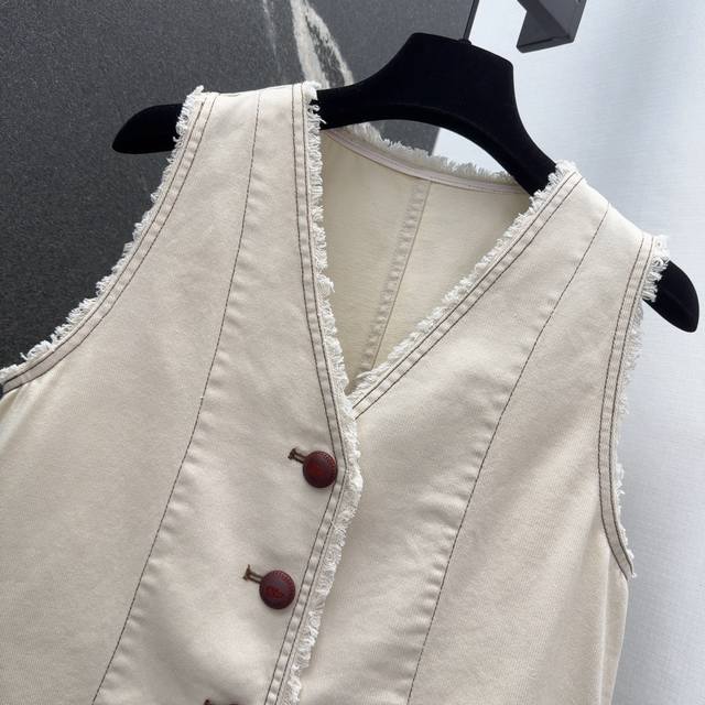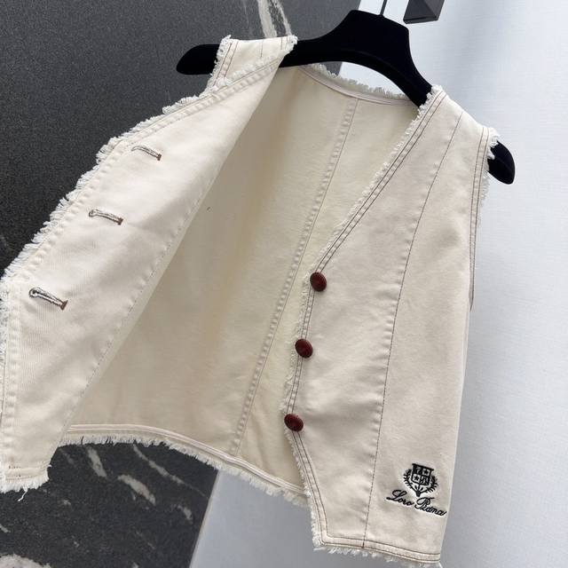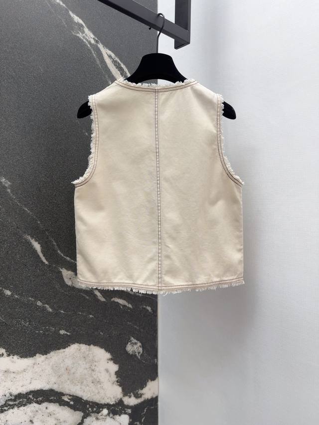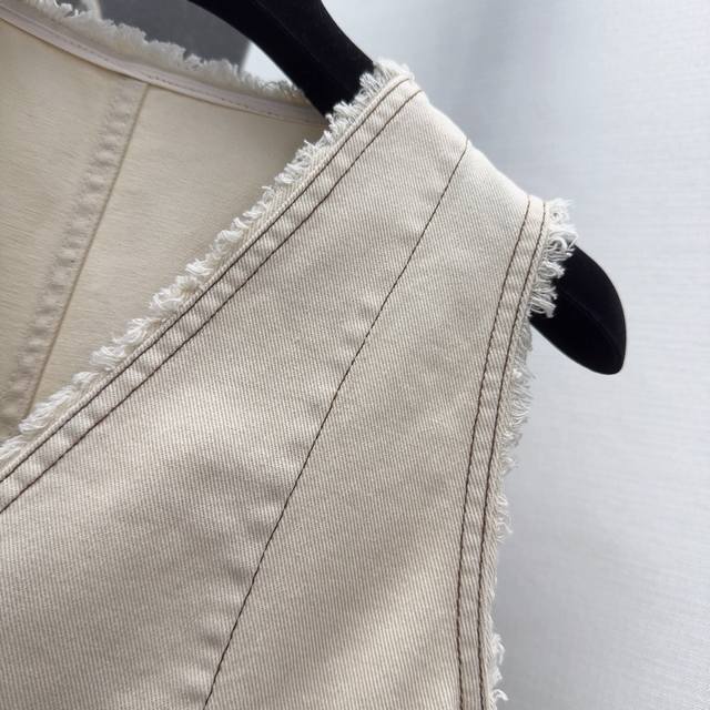 Lp20Ss New spring and summer product, age-reducing fringe V-neck vest + pleated skirt set, embroidered logo letter design, very advanced three-dimensional tailoring, short version, very tall, small A pleated skirt, covers the hips and makes you look thin, with safety pants inside to prevent exposure, elegant and modern, playful, customized cotton denim fabric, comfortable texture, a set of upper body, a perfect age-reducing temperament Sml S size: bust 90, length 51, waist 68, skirt length 40