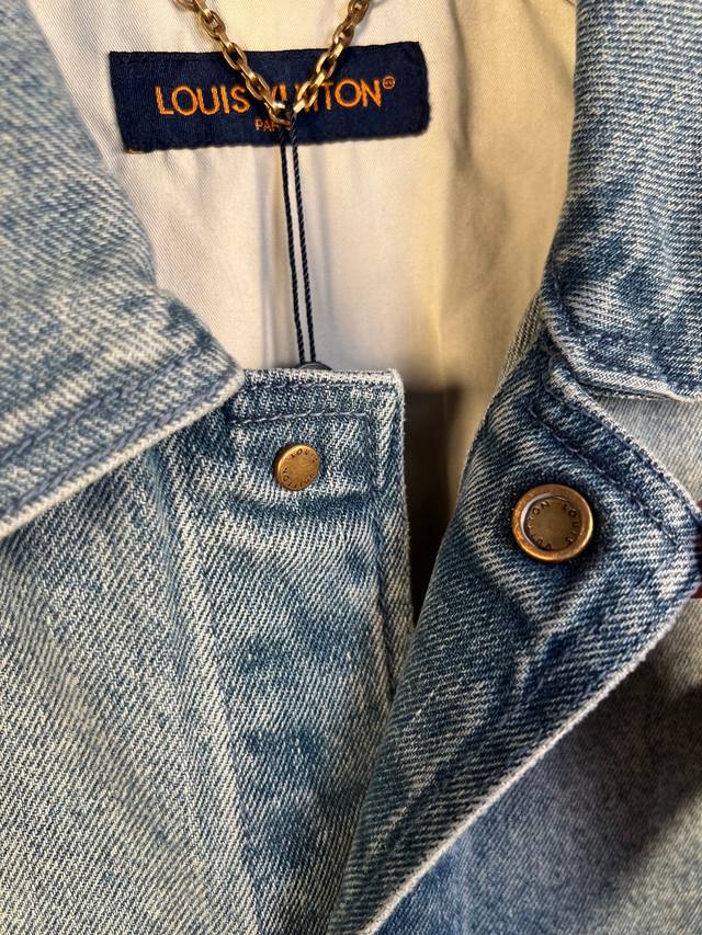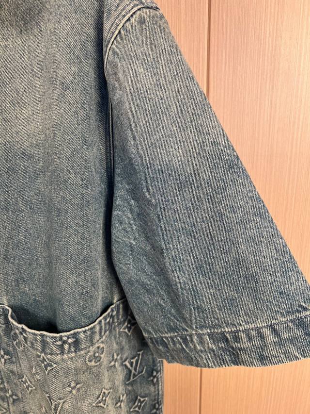 / Lv 25Ss Summer new embossed half-sleeved shirt denim jacket Wang Hedi & Huang Mi
