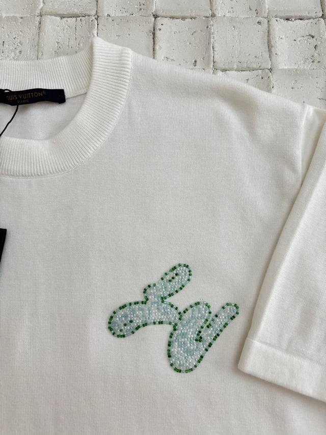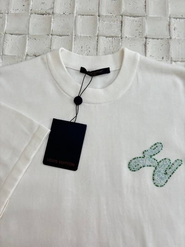 Lv* Louis 25Ss new round-neck beaded cotton short-sleeved T-shirt Made of custom