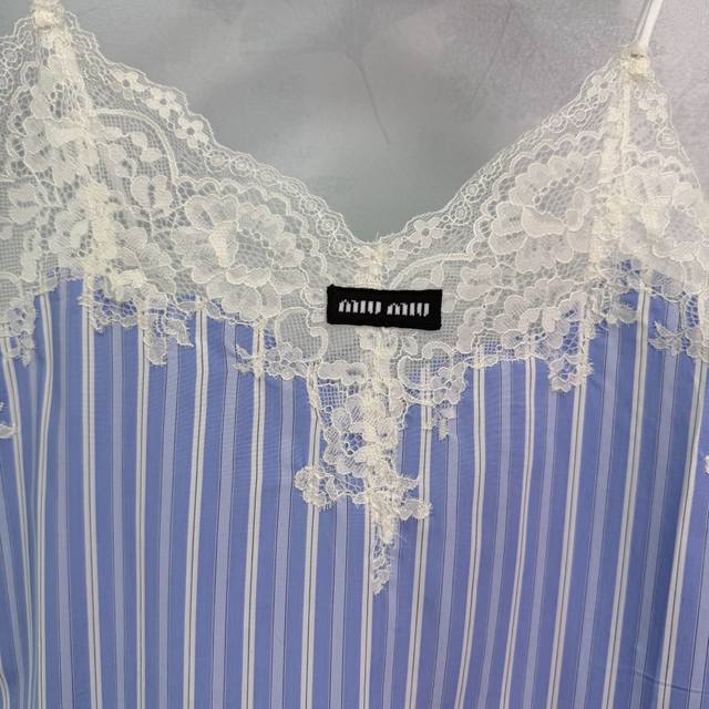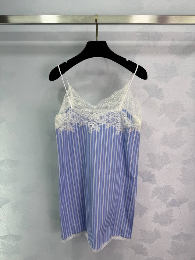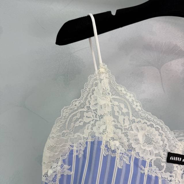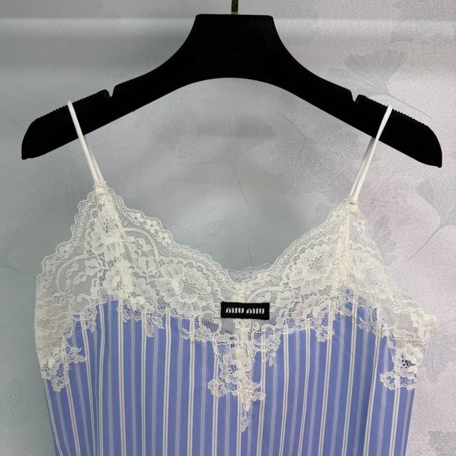 Miu*2025 Fall New Lace Striped Tank Top Dress. The lace trim on the chest is inc