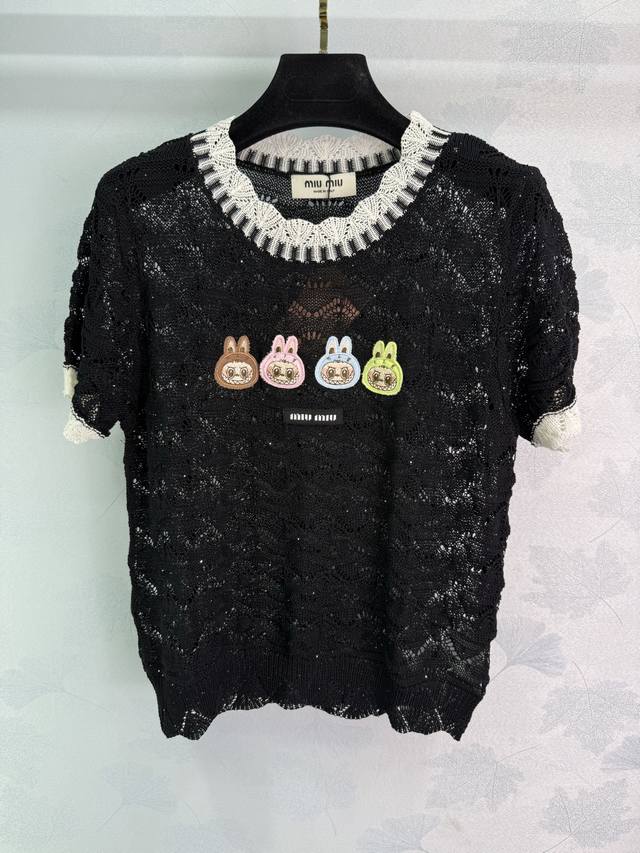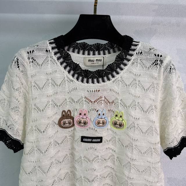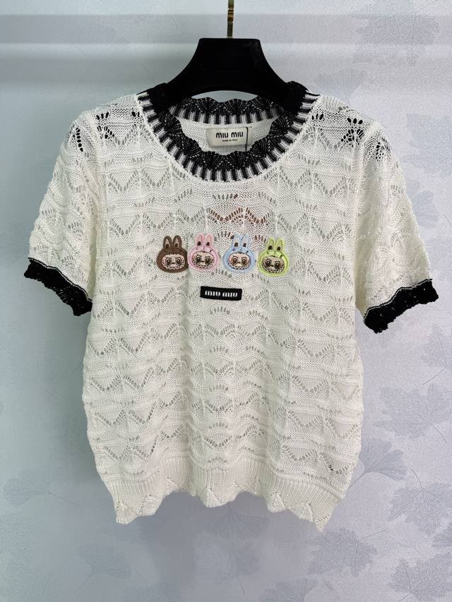 Miumi* 2025 Spring and Summer latest series! Contrast color lace collar hollow k