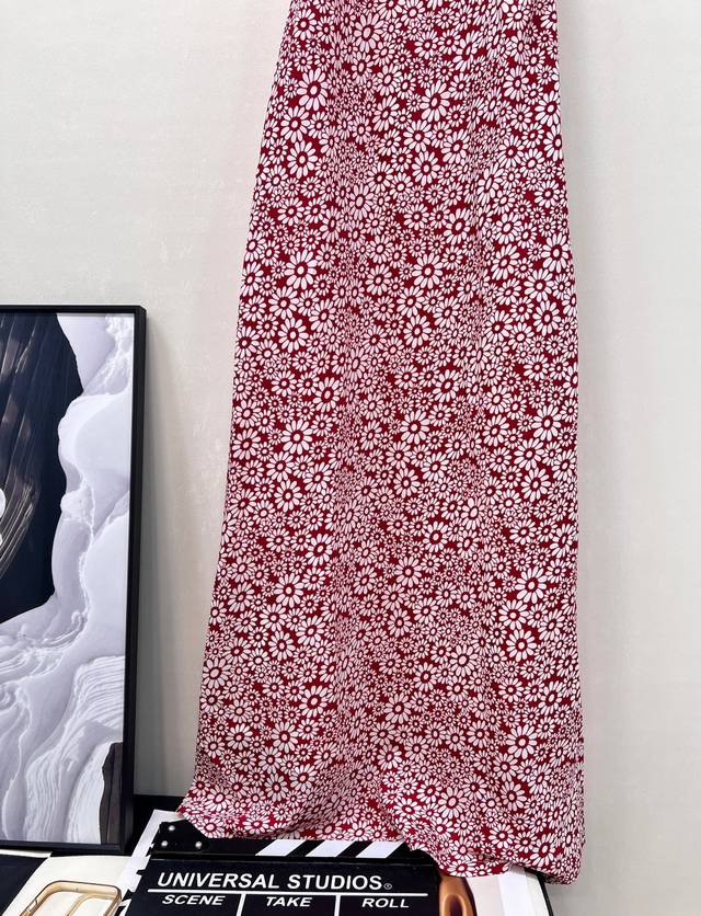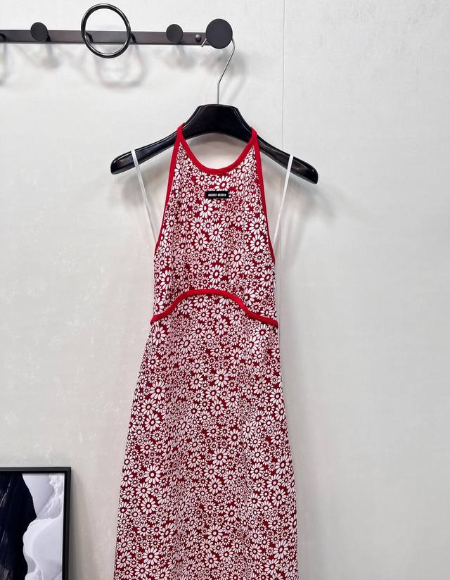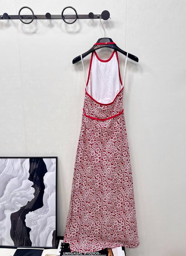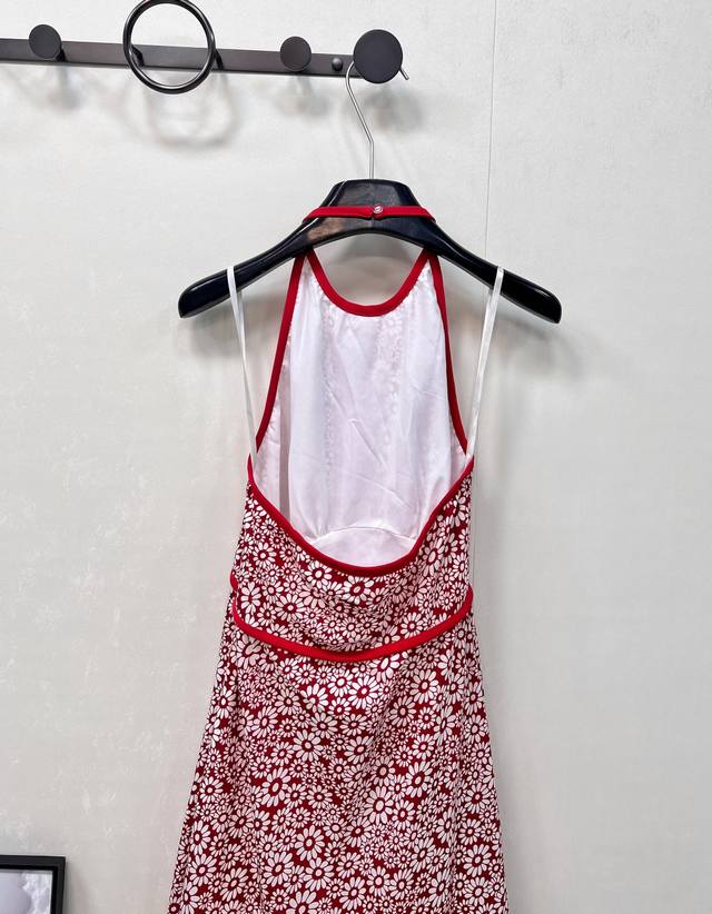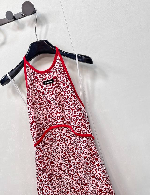 Miumiu25Ss new spring and summer red floral halter dress | Exclusive Yb development! High-quality product! Heavy silk texture, flowing and light, concealed button halter design, straight skirt, elegant and sophisticated, fashionable, sexy and pure temperament, age-reducing single product, the style is not picky, the upper body is super slimming, perfect workmanship and quality are reflected in the details, three labels are complete, large-scale delivery is available in size Sml code M