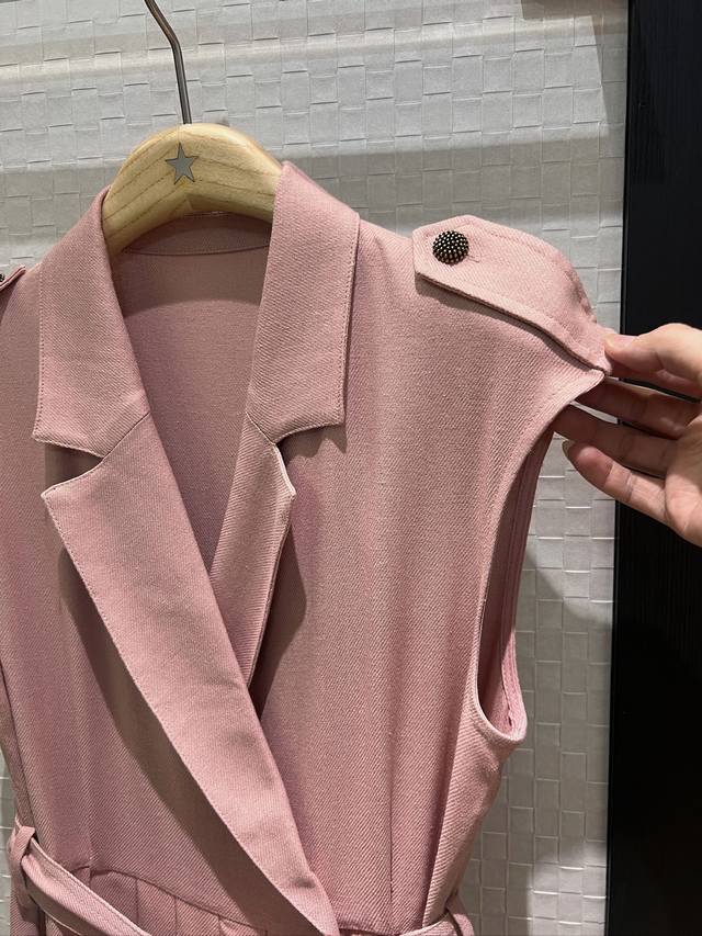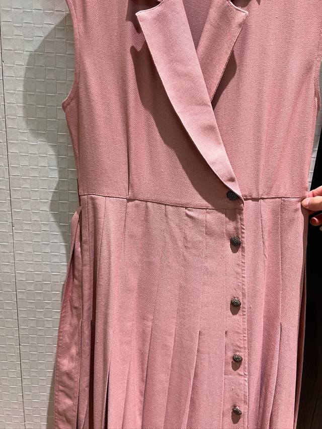 / New arrival Lp pink suit collar vest style linen dress long skirt shoulder badge