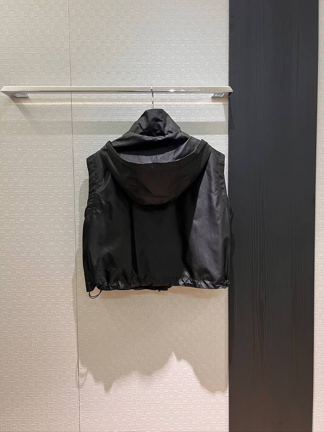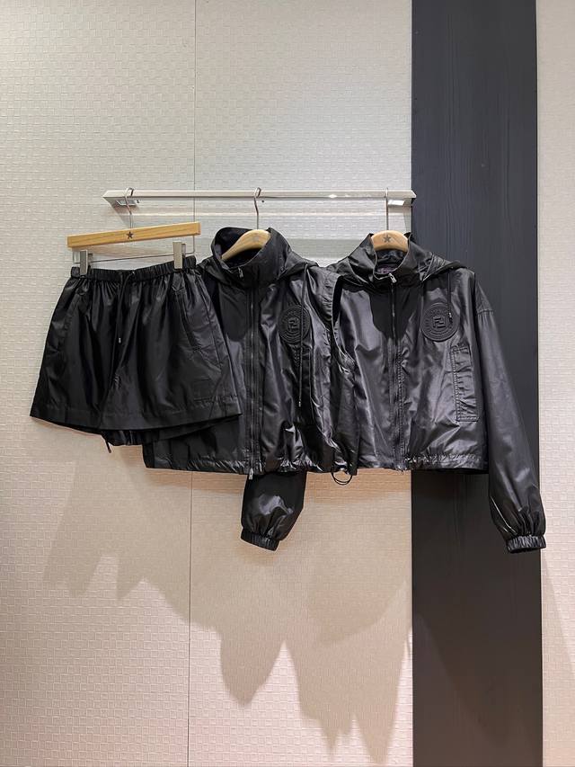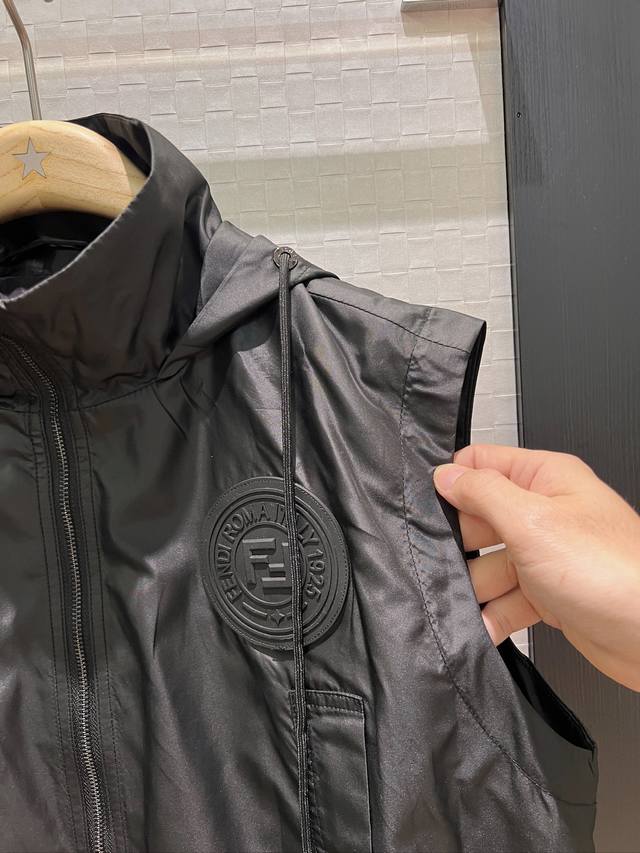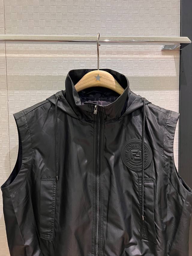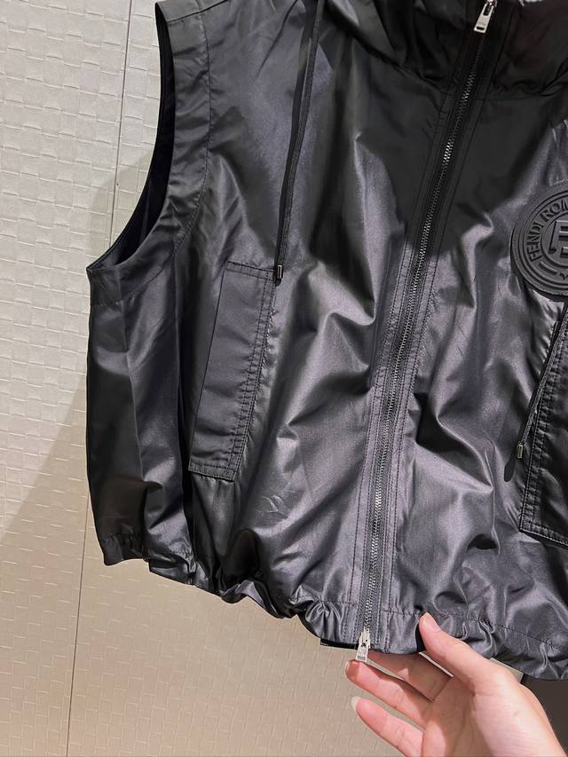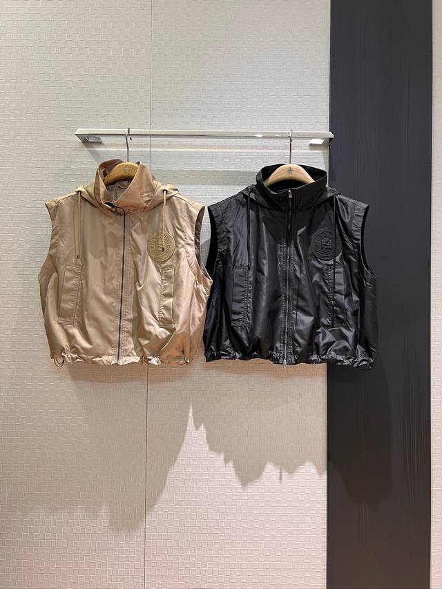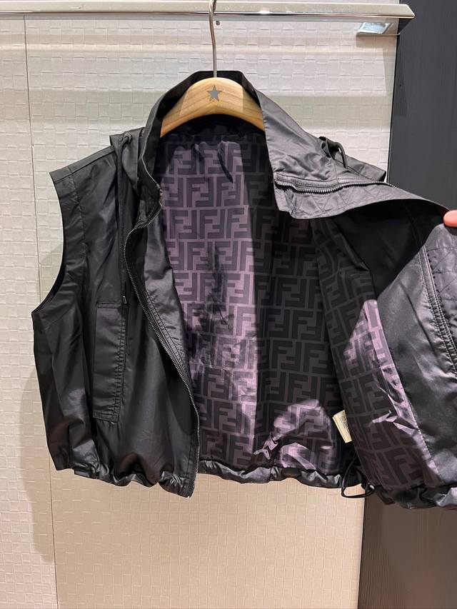 New double F lining stand collar hooded nylon loose vest vest elastic waist shorts hem drawstring elastic waist chest double F rubber logo handsome casual sweet cool versatile age-reducing fashion black khaki Sml jacket shorts