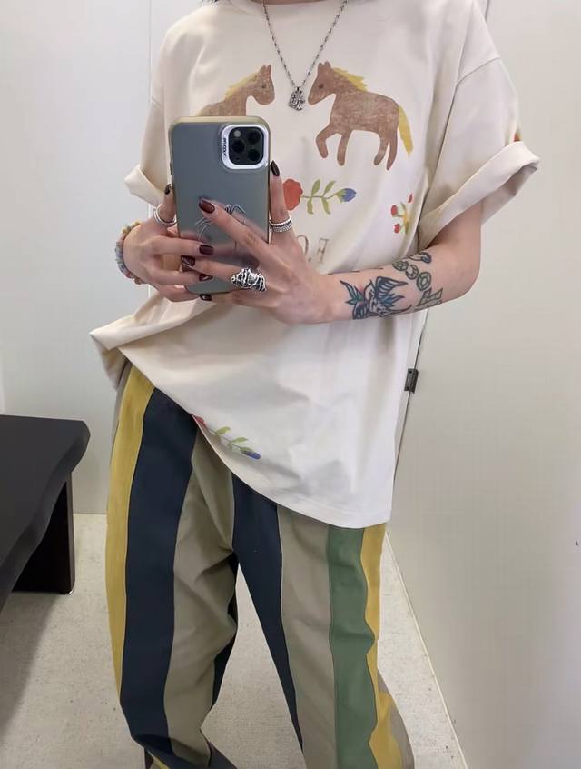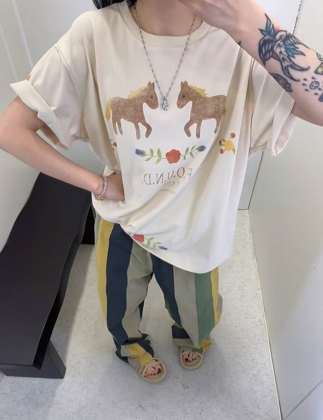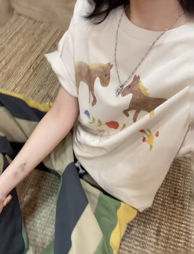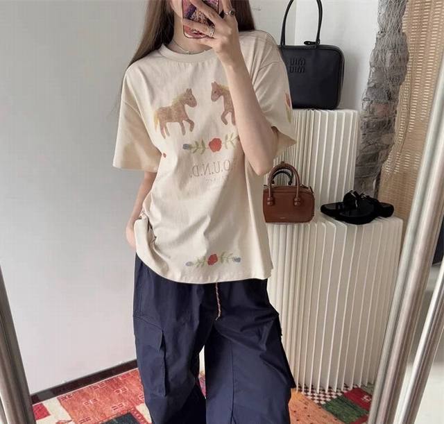 New New Pony T-shirt Round Neck Print Cartoon All-match Breathable Top Sml