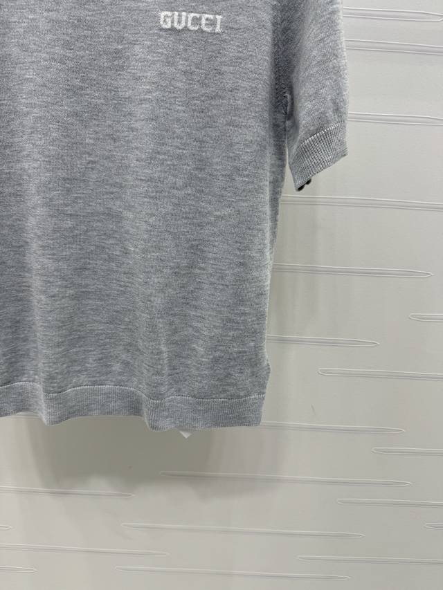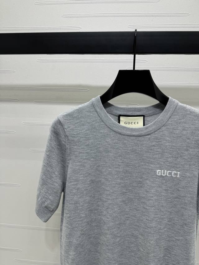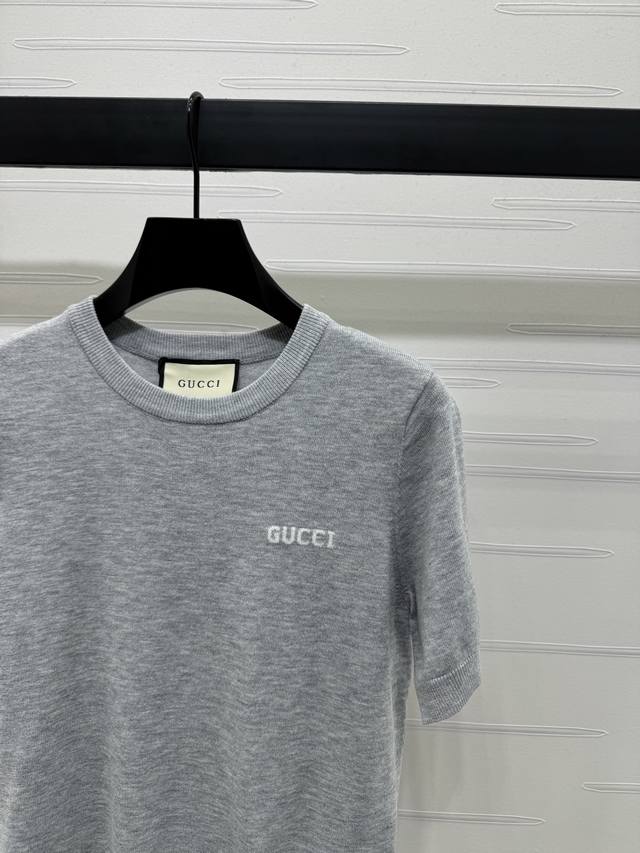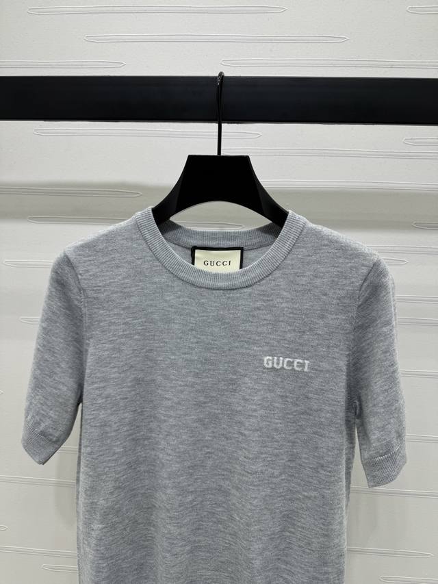 New original high-end quality Gucc*2025 spring and summer latest series! Round neck knitted short sleeves! Custom wool yarn weaving elasticity and comfort full of texture Short-sleeved top cut highlights the brand style Made of wool material with elasticity to show a slimming visual effect The collar and cuffs are ribbed with letters on the chest as a design highlight, making the simple basic style instantly become a fashionable item, showing a high-end style, it is colorful and fashionable when worn alone or as an inner layer! 2 colors! SM-L3 size! High quality large goods
