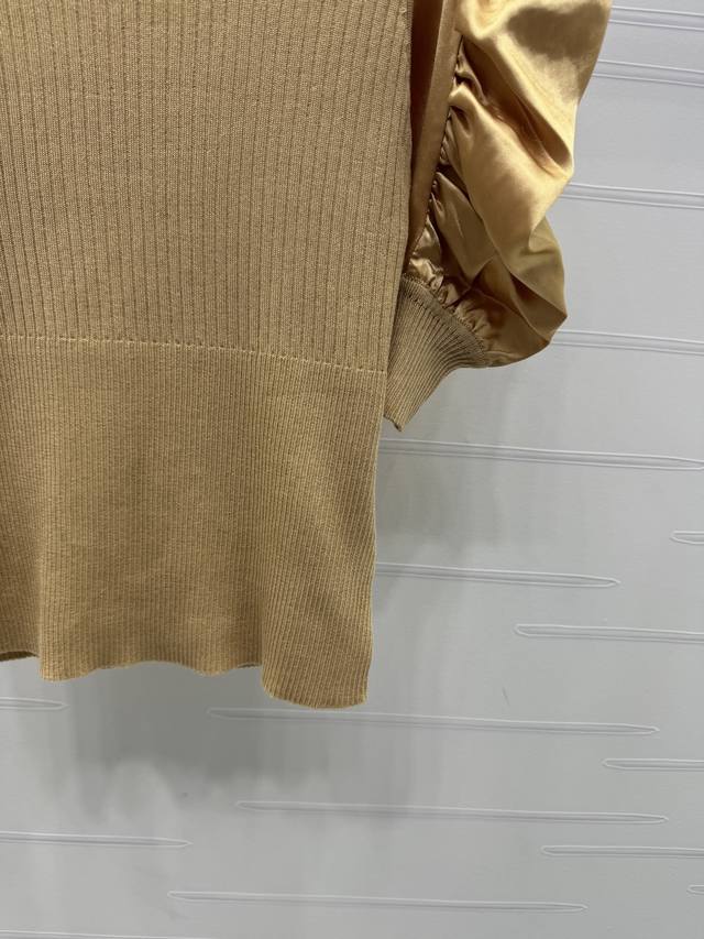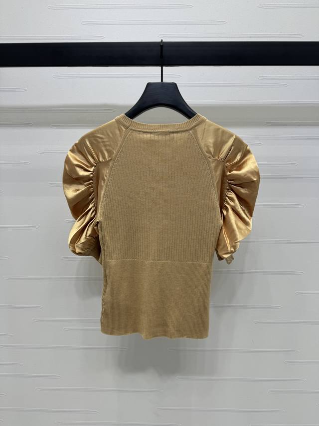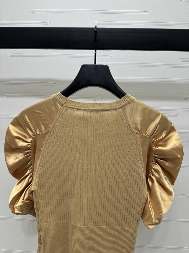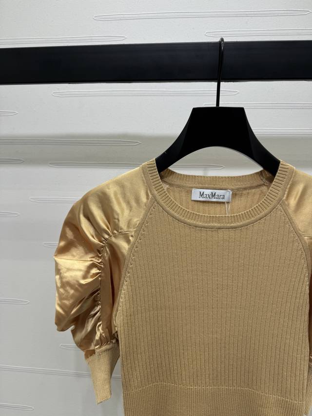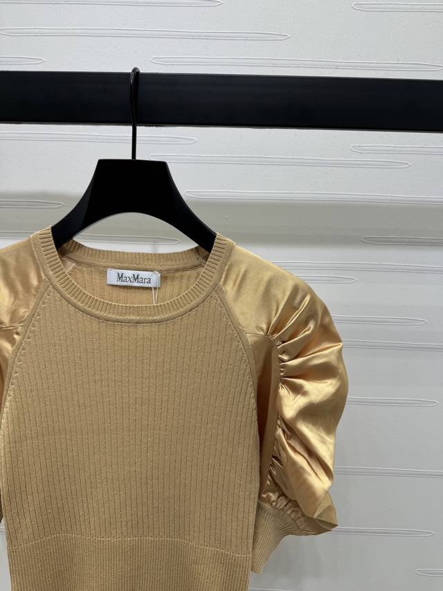 New original high-end quality Maxmar* 2025 Spring and Summer latest series! Puff sleeve knitted short sleeves! Custom imported Tencel satin material with smooth gloss and high-grade vertical pit texture throughout the body. Fits the waist and abdomen to make you look slim without any extra decoration. The cuffs are spliced with satin material to create a puff sleeve effect, adding a sweet atmosphere. The details are perfect! 3 colors! SM-L3 size! High quality large goods