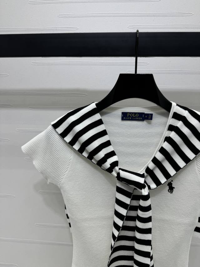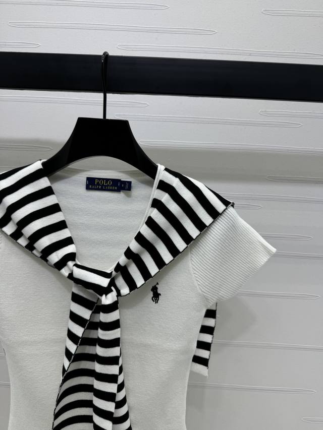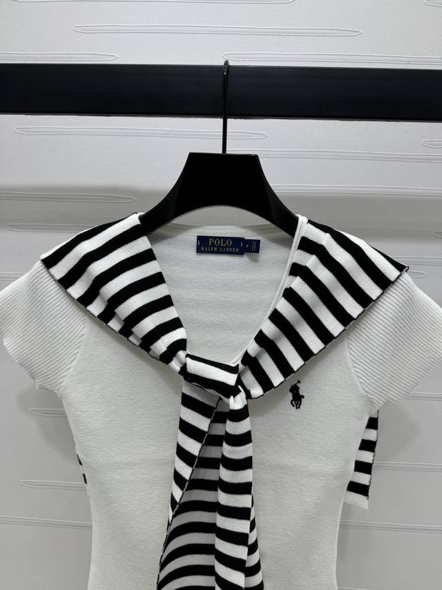 New original high-end quality Ralph Lauren Pol* 2025 Spring and Summer latest series! Shawl striped knitted short sleeves! Custom wool yarn weaving texture high-end comfortable V-neck knitted short-sleeved top tailored ready-to-wear all-solid base External striped shawl can be loosened or tied to highlight the brand personality Highlight the high-end sense of wear and dress The hemming is processed with solid color thread hemming Elasticity makes it more refined Wearing slimming and showing a relaxed tone Light luxury and fashionable temperament The first choice for fashion wear in all seasons! 1 color! SM-L3 size! High quality large goods A706B270C