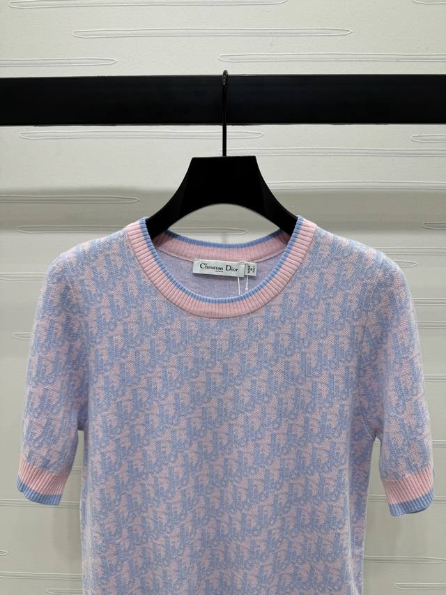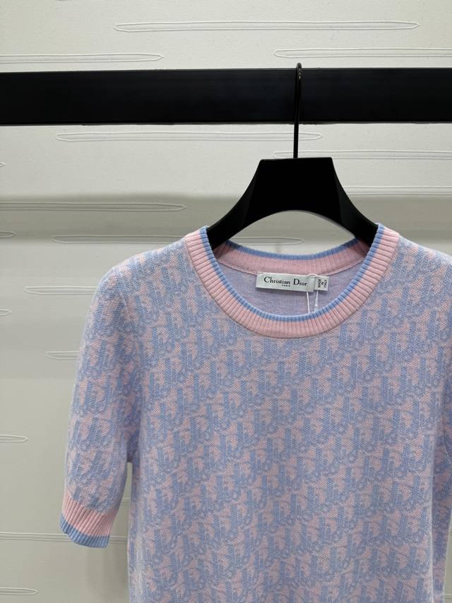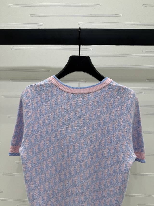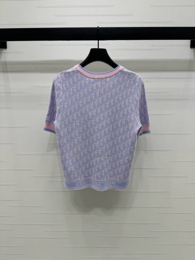 New, original, high-quality Dio* 2025 Early Fall collection! Knit short-sleeved shirt with monogram logo! Custom imported knit material, comfortable, soft, and stretchy. Contrast-colored ribbed hem at the collar and cuffs adds a layered look. All-over monogram logo jacquard accents, and a lettered logo on the hem highlight the brand's signature style. Cute and playful color schemes make this a versatile and versatile piece. Available in two colors! Sizes SM-L3! High-quality, bulky stock. A706B330C.