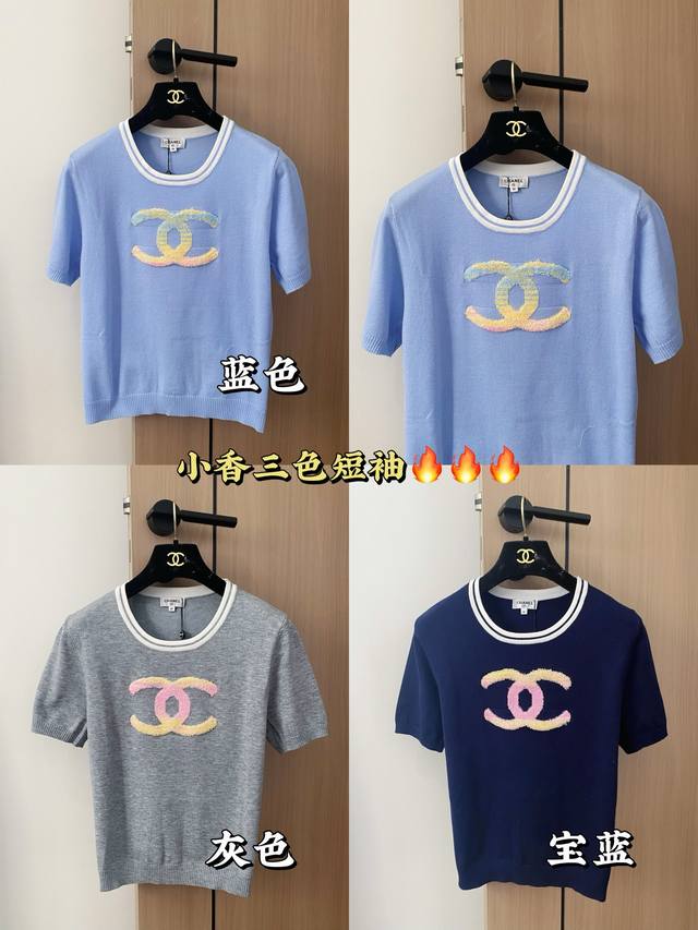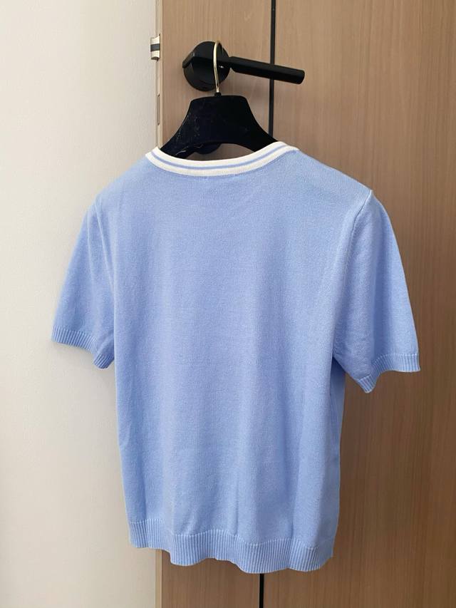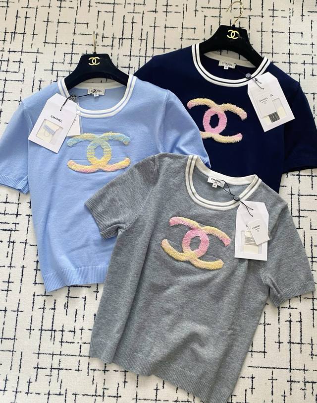 New three-color short-sleeved fabric with breathable logo pattern design and embellishment! Upper body high-end atmosphere color