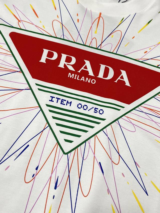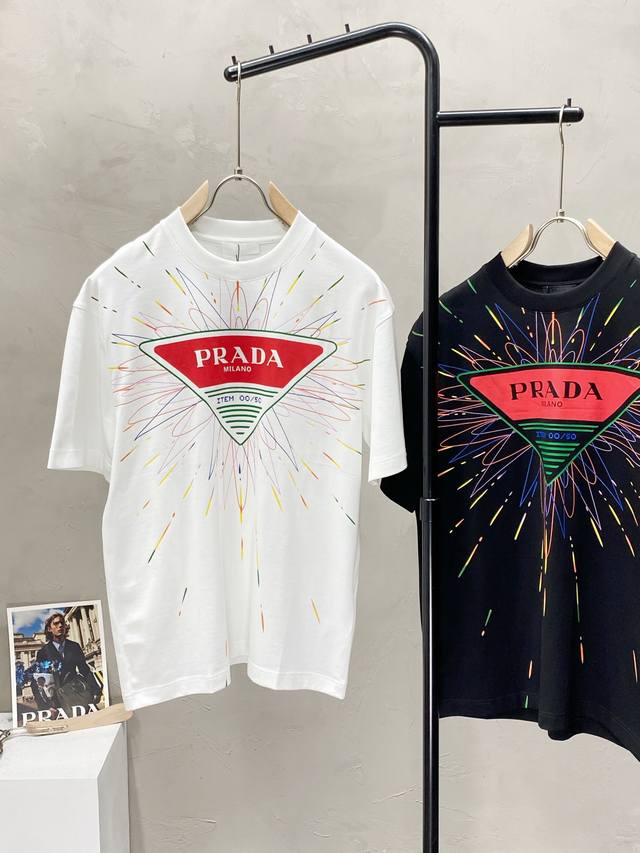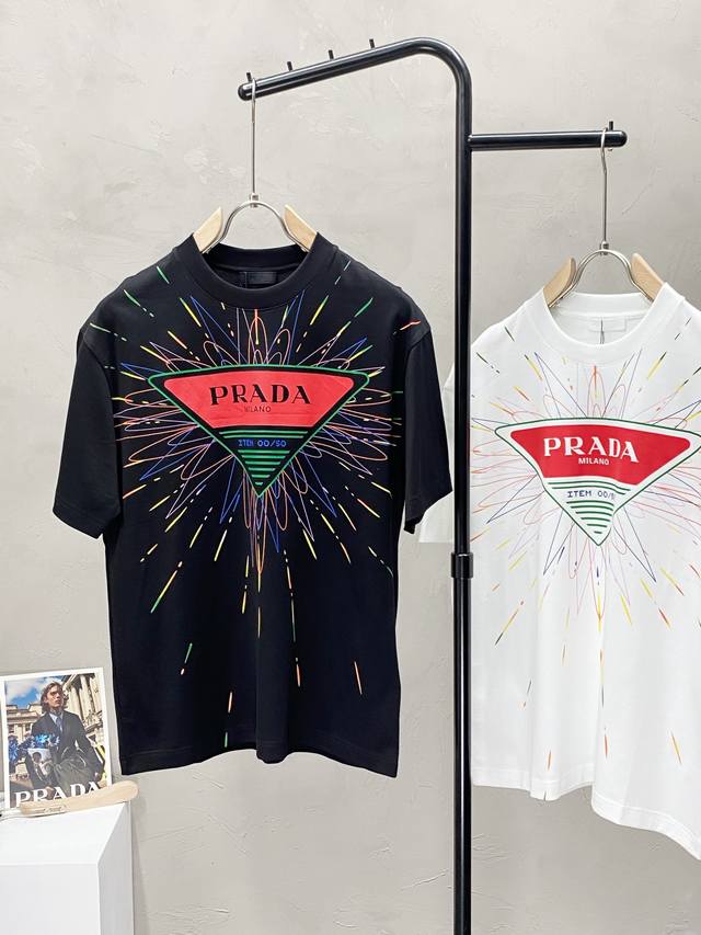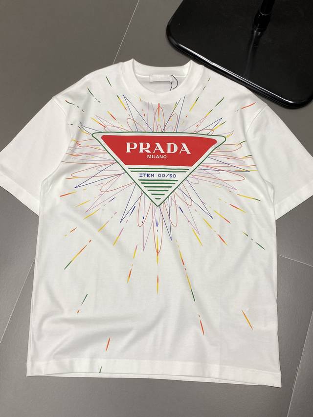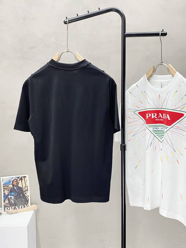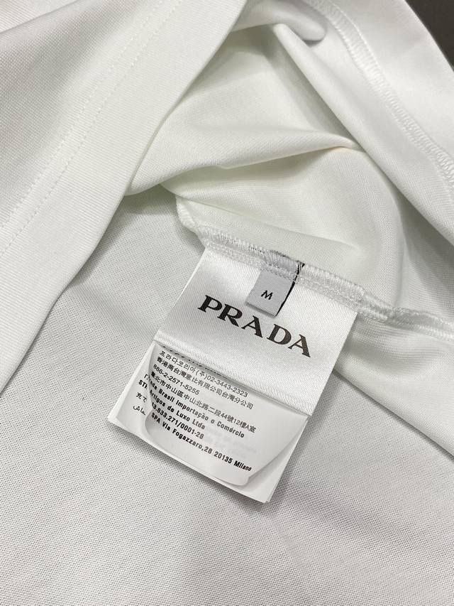 Prada exclusive new original men's casual short-sleeved high-end high version fashionable and versatile popular imported fabrics feel super soft and delicate to wear skin-friendly and comfortable high-end boutique OEM P fine workmanship upper body is very good men's must-have single item three labels complete size M-3Xl