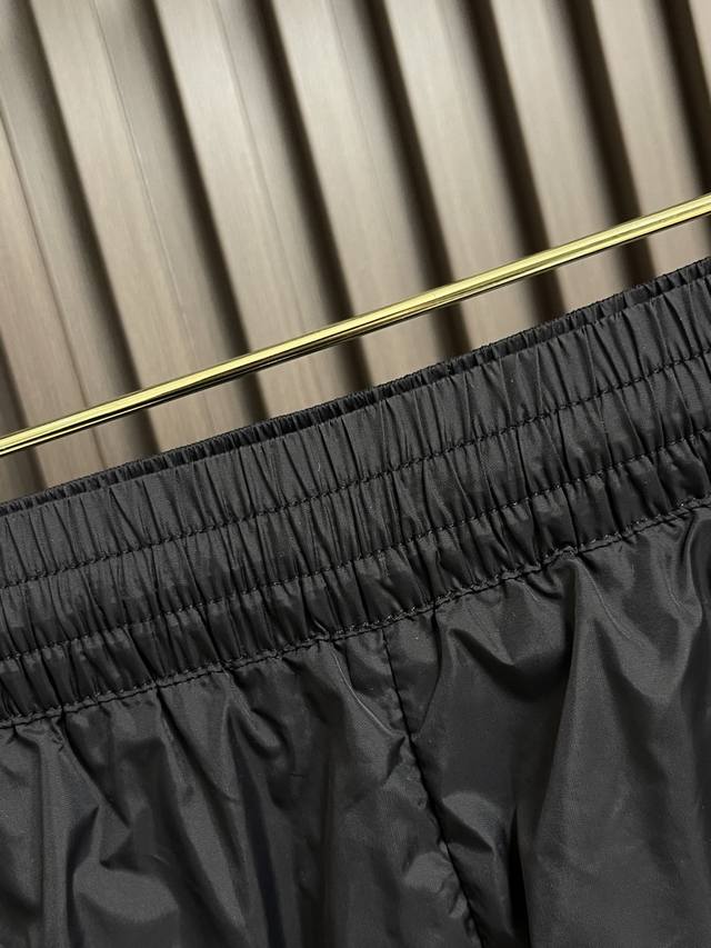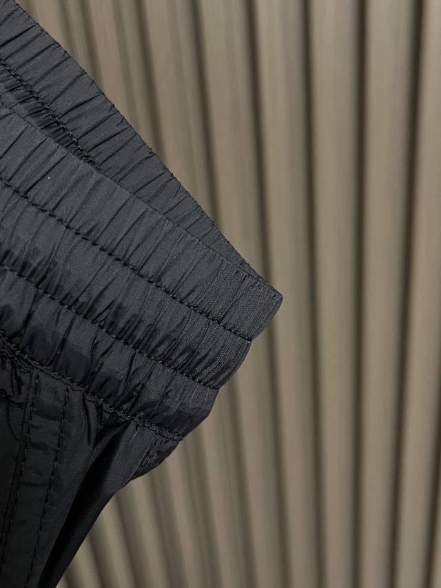 Prada printed nylon shorts, made of custom recycled nylon fabric, fresh and breathable. The iconic Prada Logo is embellished on the pants with a pure white label, and the three-dimensional tailoring cleverly integrated into the side adds layers and dynamics. Thick plate printing, using a thick plate printing machine, converts the design pattern into a printable template, and prints the pattern layer by layer on the textile through pressure. The entire printing process requires 5 to 6 moldings. Size: 38-40-42-44 S-Xl