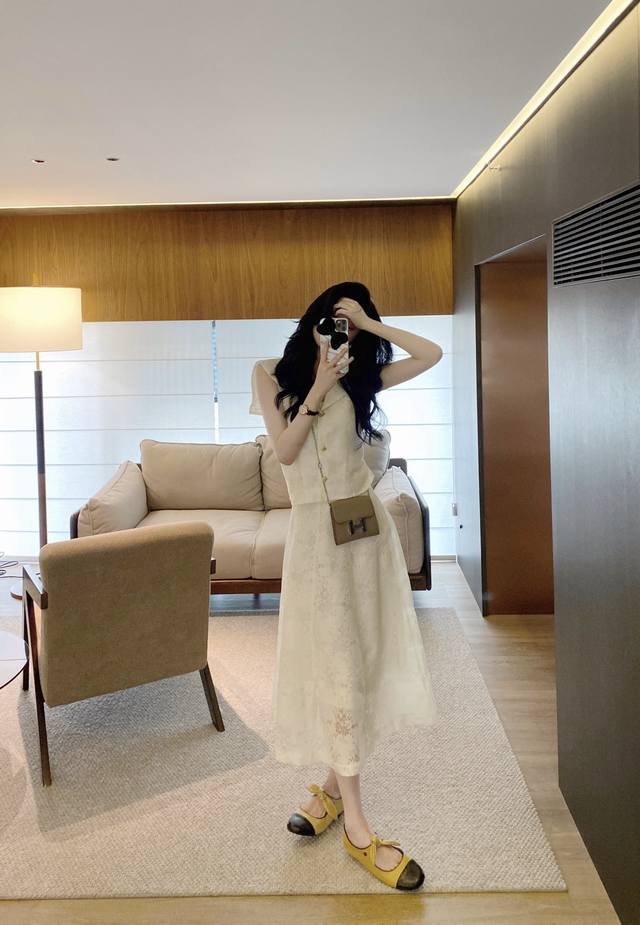70 new summer design Heavy sweet skirt Heavy craftsmanship Openwork series awakens the romantic memories of Paris holidays The fabric surface presents complex texture and hollow light and shadow At the same time, it is more refined to interpret the authentic Parisian style Smlxl