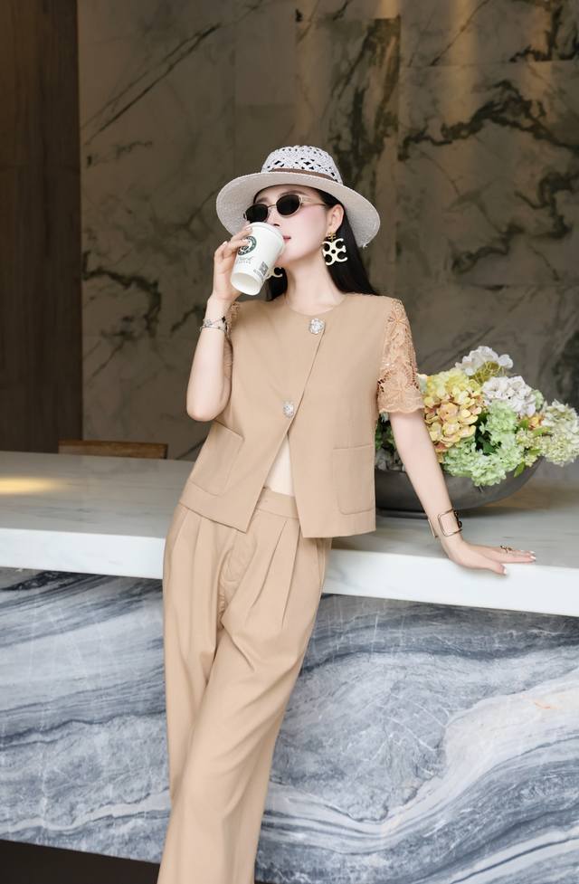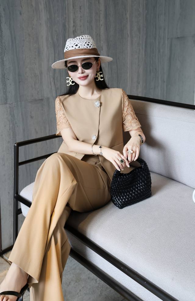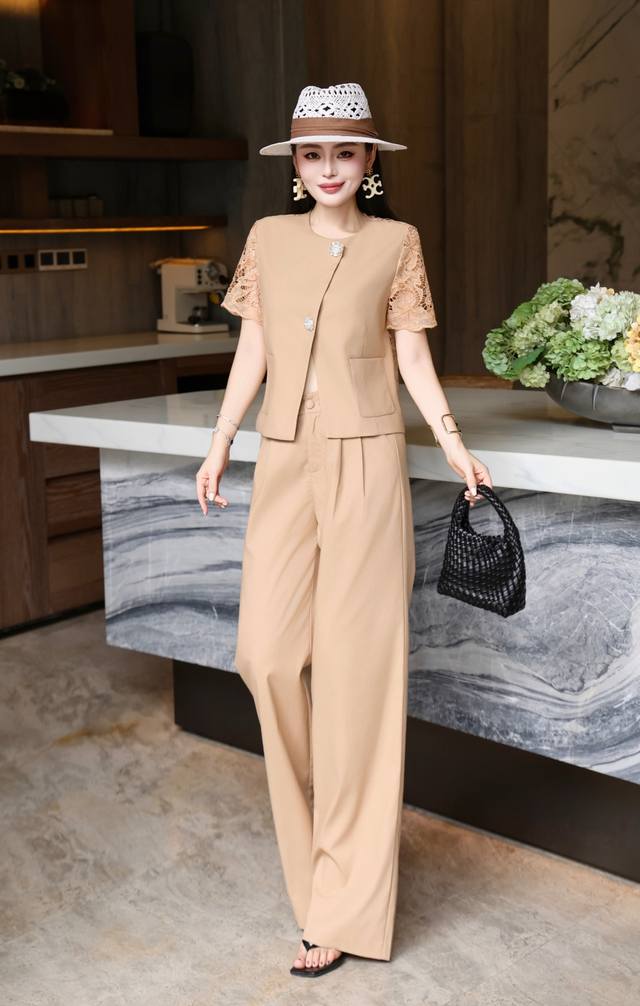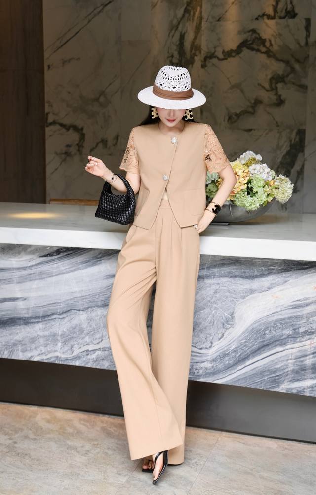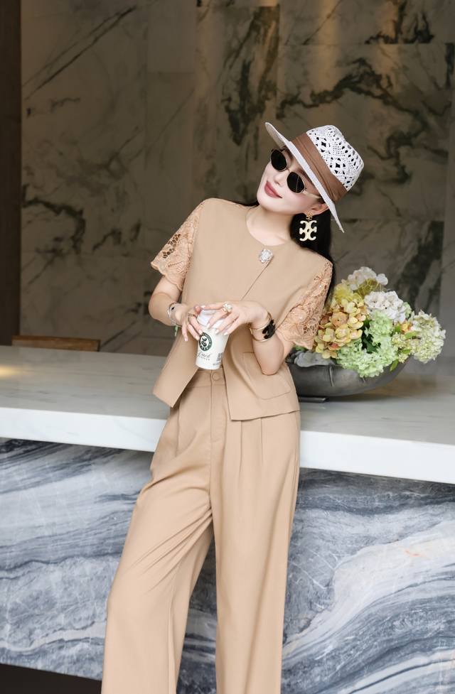 Set New fashion suit, made of imported linen and water-soluble fabric, noble and