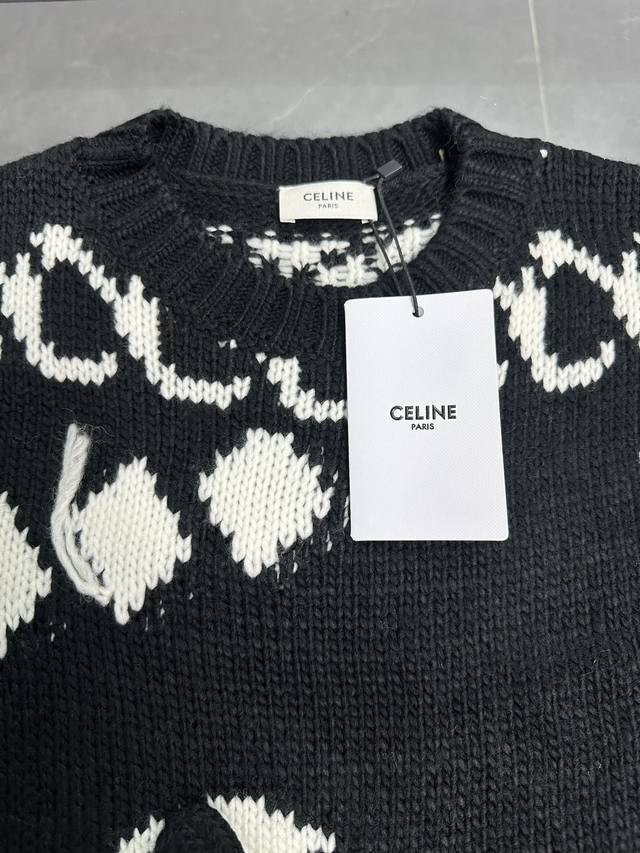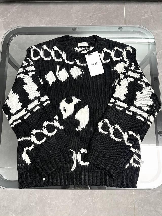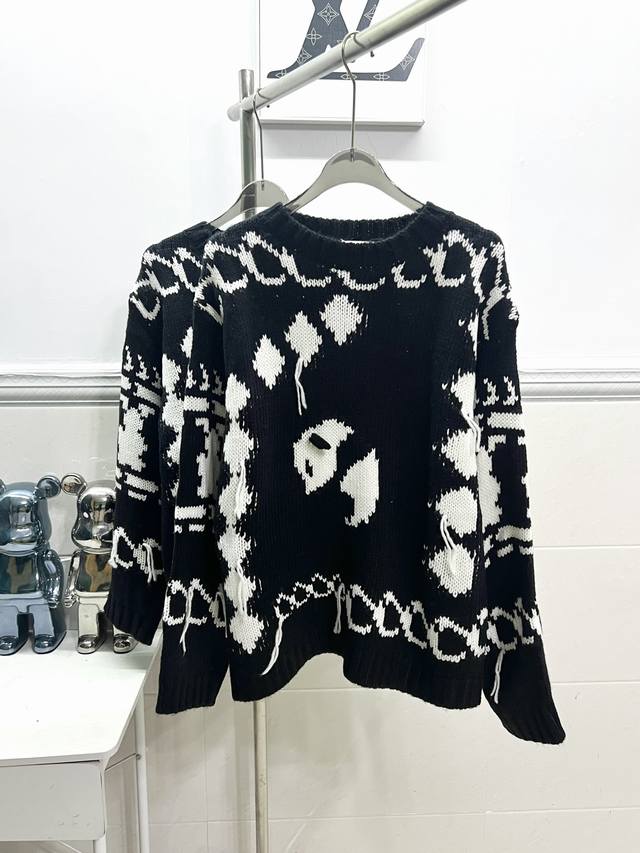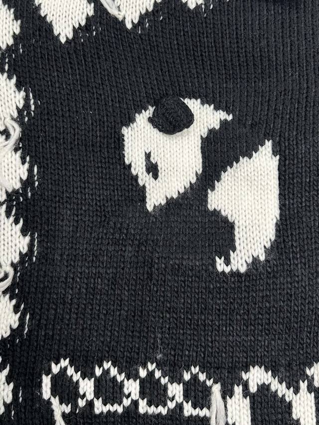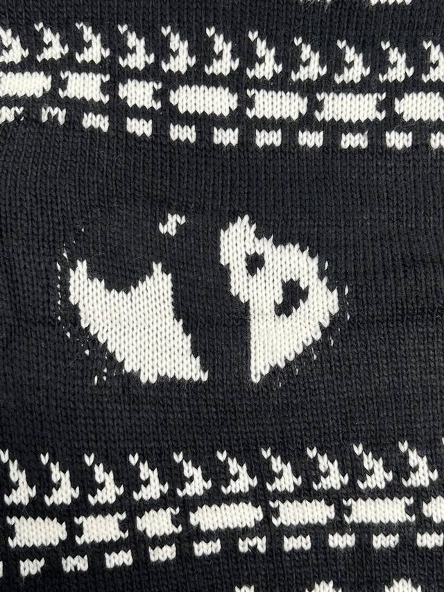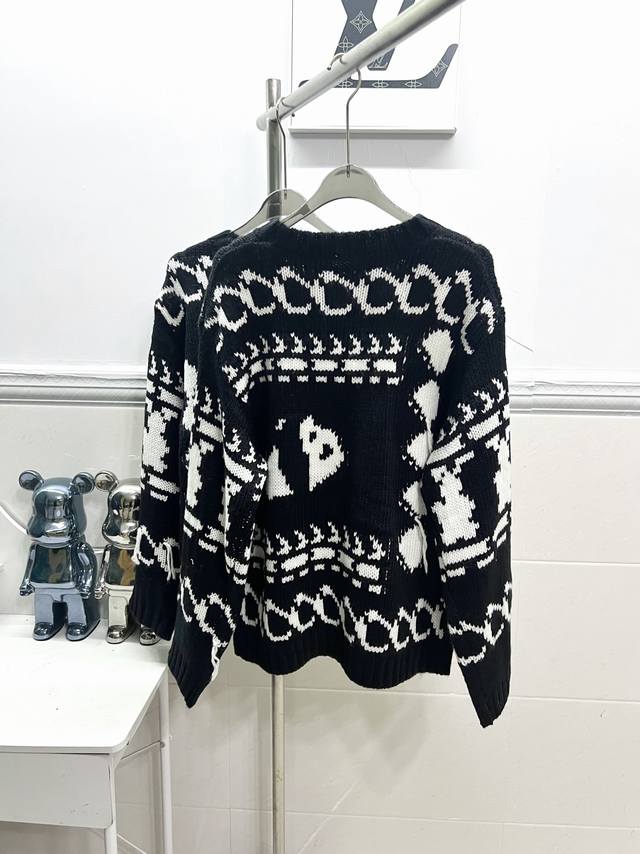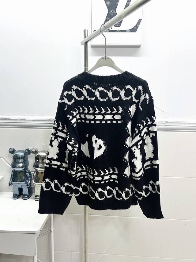 Style No. R047 Celin black and white contrast pattern panda jacquard knot decoration knitted long-sleeved round neck sweatshirt Color: Black Size: S M L
