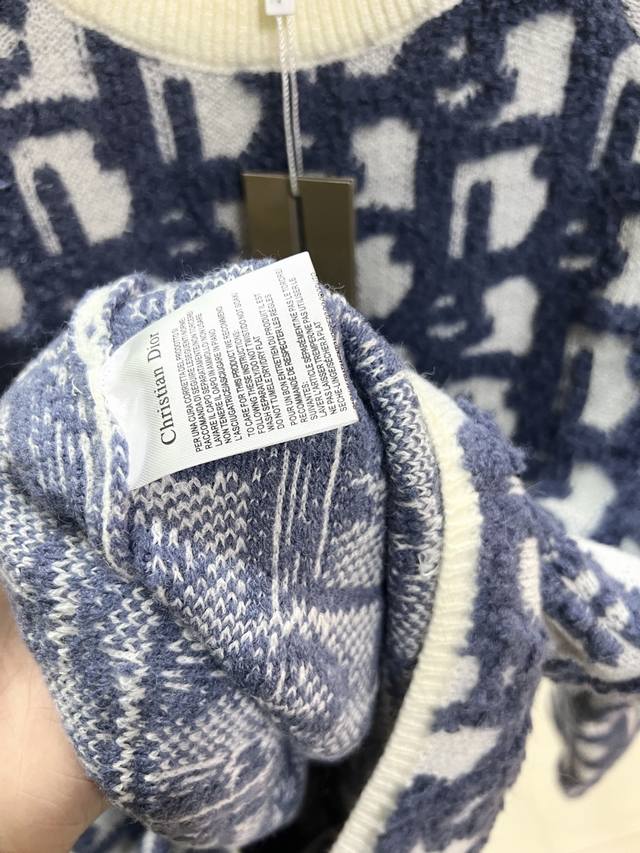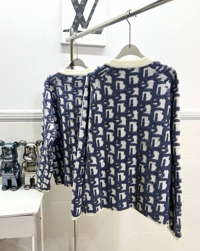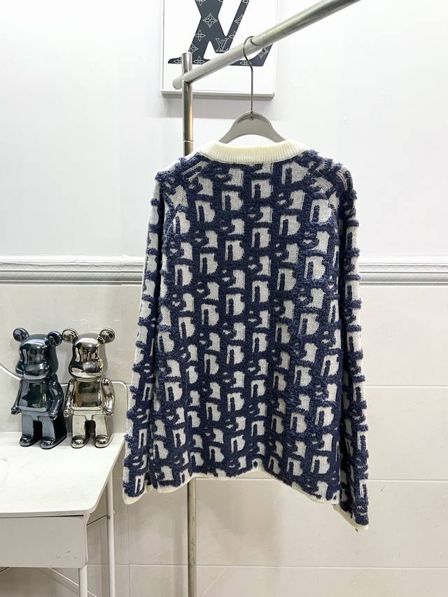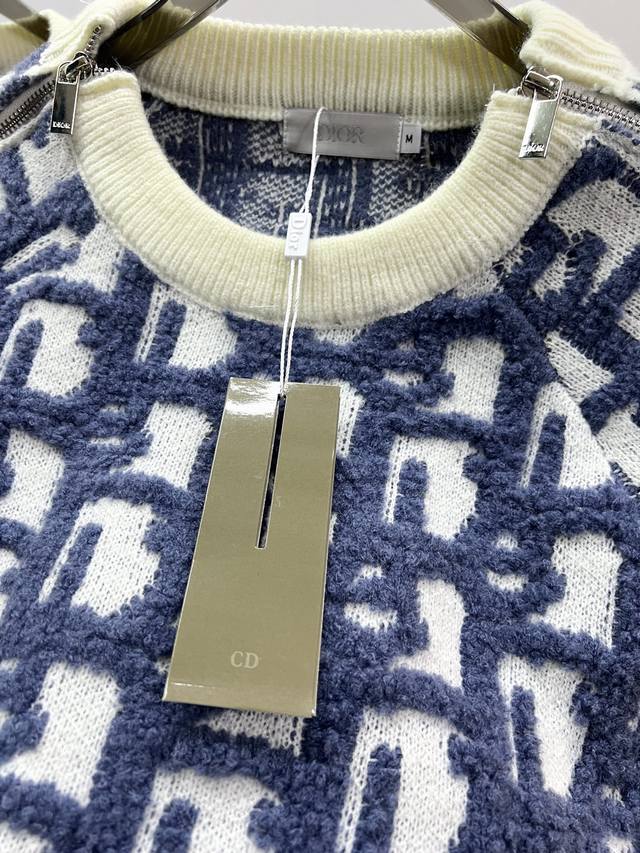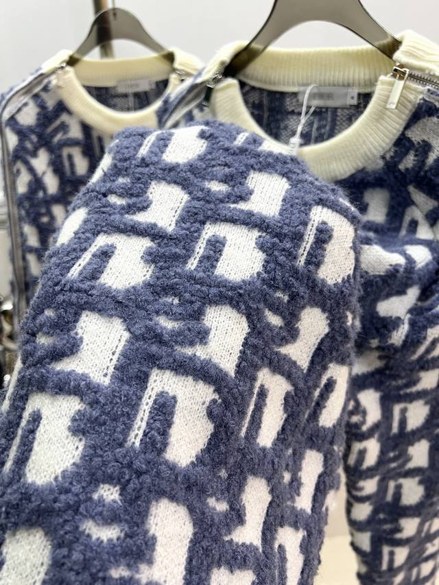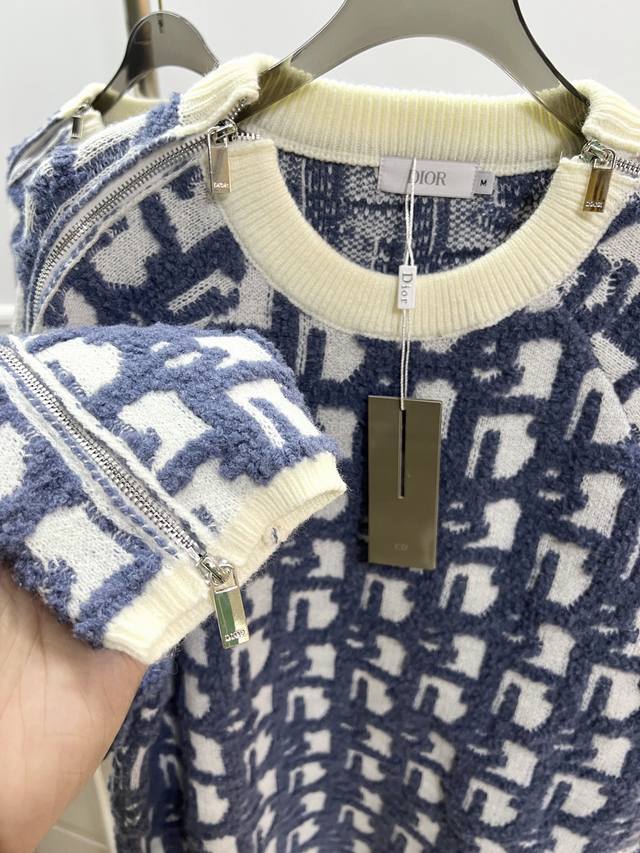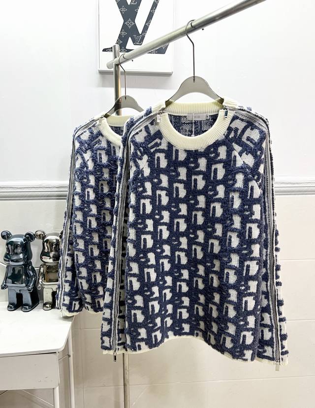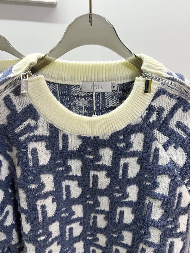 Style R060Dior Dior Jay Chou jacquard sweater double-sided jacquard zipper knit, using white sheep wool blend fabric. Ribbed round neck double zipper closure design, the whole piece is knitted using imported machines, and the side zipper is hand-sewn, versatile and fashionable Size: S M L XL
