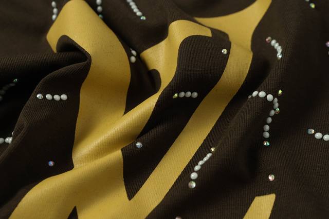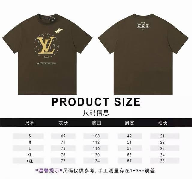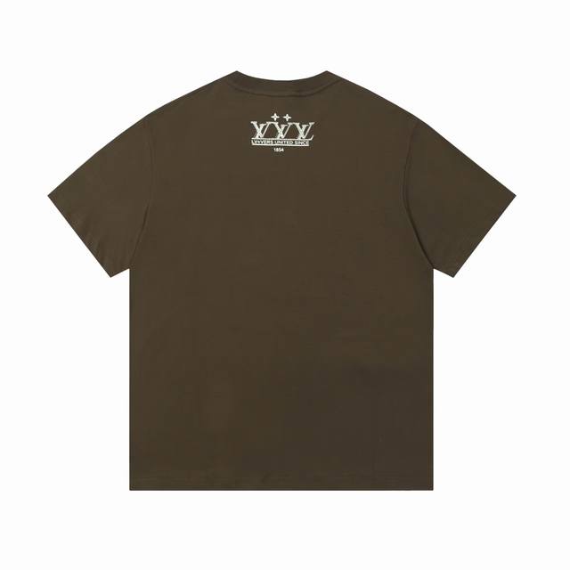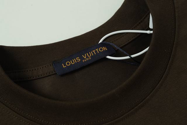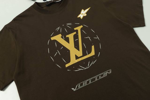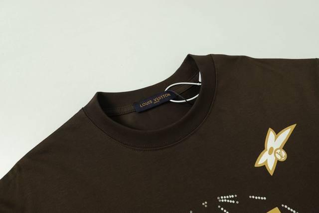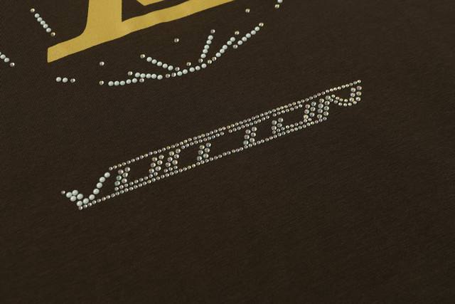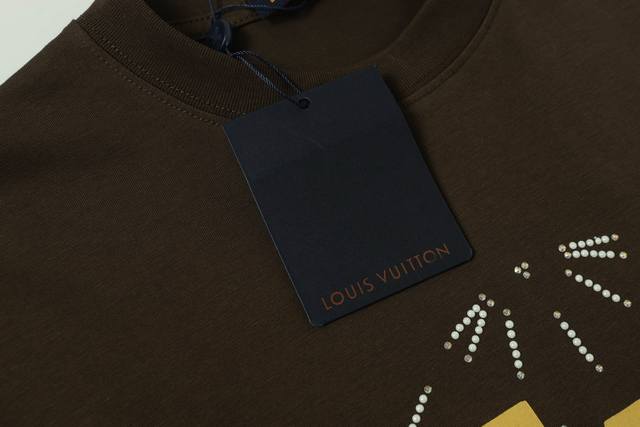 Vd1010 High-quality craftsmanship Louis Vuitton*Louis Vuitton Lv Ss25 route Ryan stone decorated short-sleeved T-shirt uses original board exclusive customization 260g 32s Shuangsha pure cotton fabric with a very soft and comfortable texture 100% different from the top fabrics in the market, no shrinkage, no deformation, no pilling, with 320g 1X1 threaded fabric, threaded and fixed dyeing in the same vat, no color difference, not easy to deform, original 1:1 version, original 1:1 customization accessories collar label water label hang tag packaging details perfect color: brown size: S-Xxl