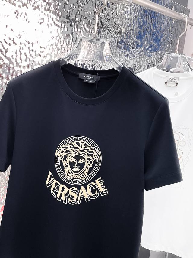 Versac 2025Ss new short-sleeved crew neck T-shirt, custom-made from mercerized cotton, with a simple and elegant design. The double beauty head design on the chest, coupled with superb craftsmanship, creates a low-key luxury with a soft and comfortable feel. The exquisite seams and workmanship are top-notch, making it a must-have for stylish men. Sizes: M-3Xl