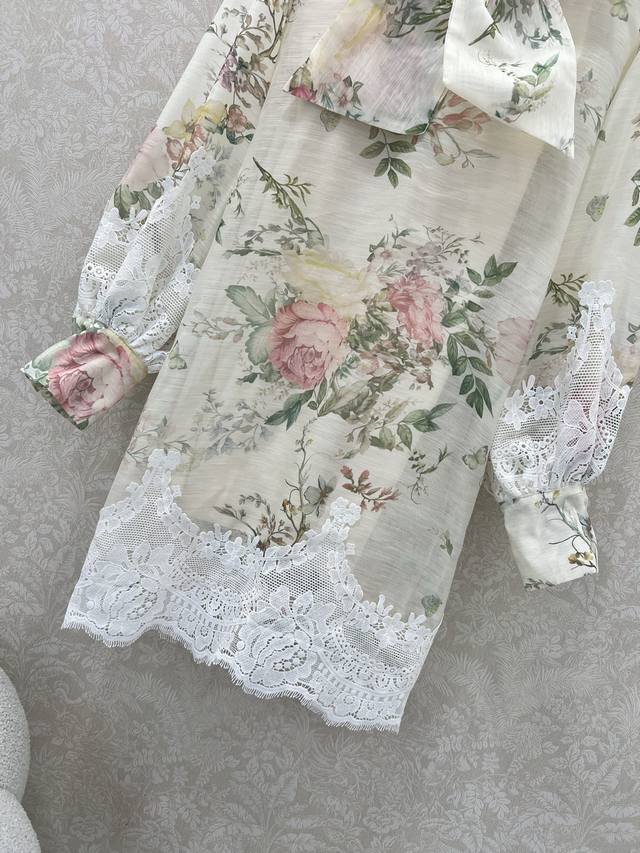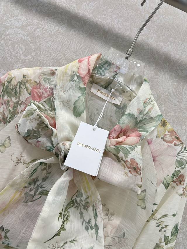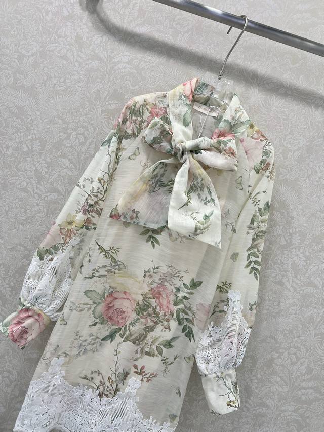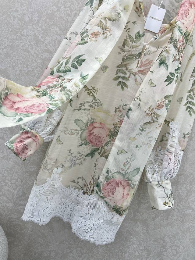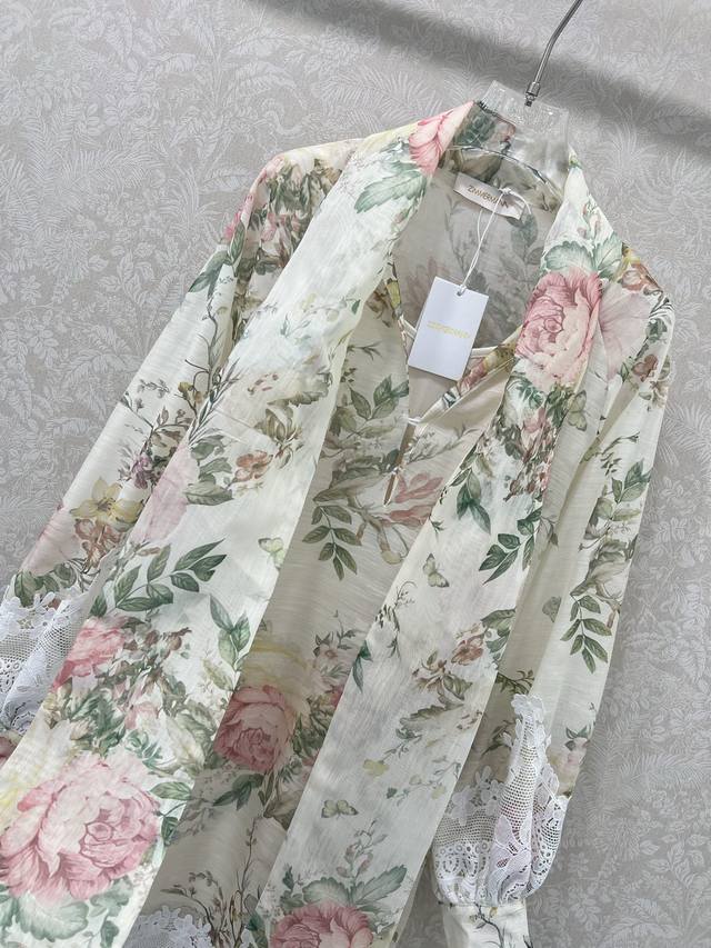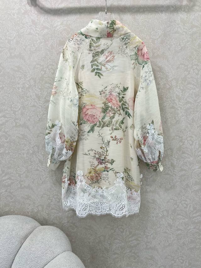 Zimmerman 25 new ribbon embroidered wide-sleeved oversized dress features a classic ribbon neckline and wide sleeves with gathered cuffs. Embroidered trim details are accented throughout, with lace panels and lantern sleeves. A detachable belt and inner slip skirt accentuate the elegant and luxurious look. Available in two colors and four sizes (Smlxlb).