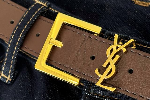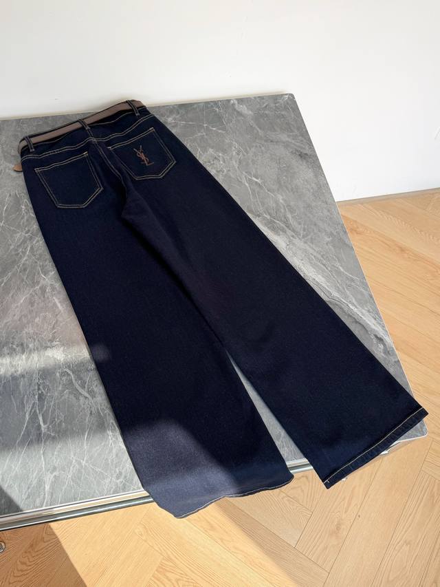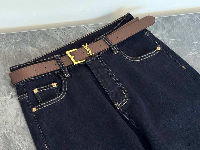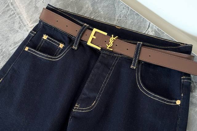 25 A new classic, timeless, YSL-inspired jeans with a built-in belt. These jeans, with their built-in YSL belt, truly nail the "luxury, relaxed feel" on your legs! The raw, dark blue denim is incredibly textured, and the visible stitching replicates the classic DNA of vintage denim. Adding YSL's signature metal belt buckle, they instantly elevate your look. The high-waisted, straight-leg silhouette conceals and flatters, making anyone wearing them look like a "leg queen"! Solid color, Smlxl