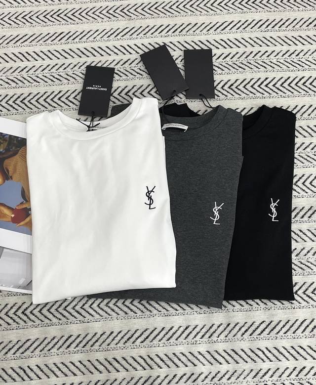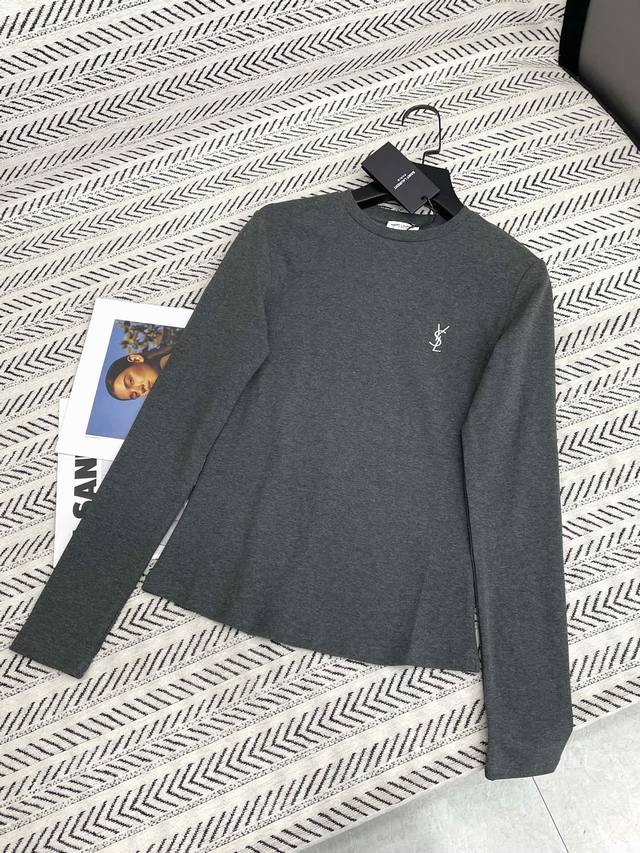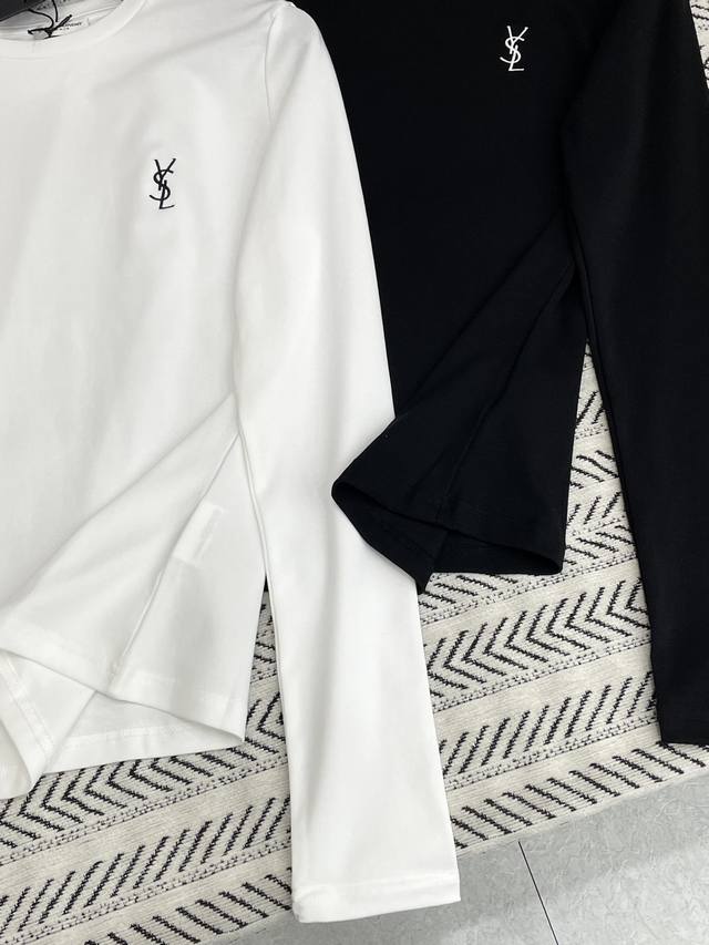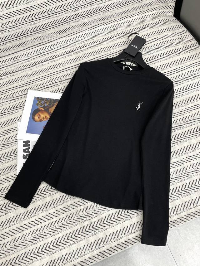 Ysl simple classic embroidered small letter pattern long-sleeved T-shirt!