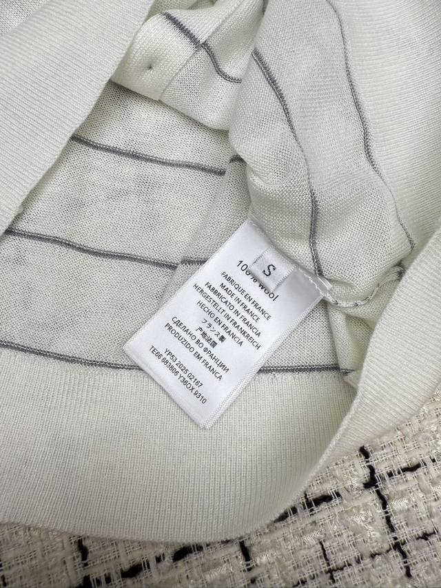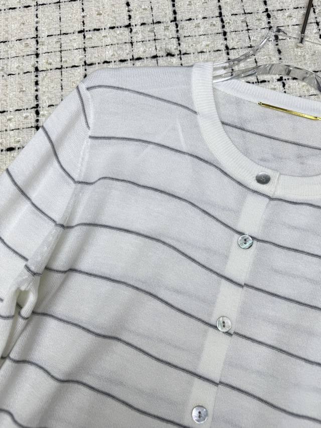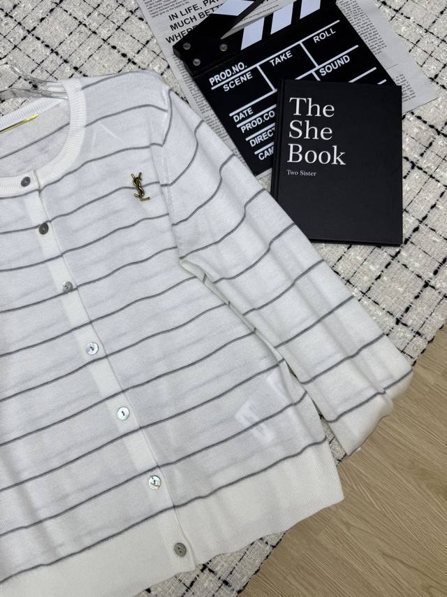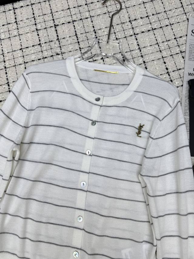 A must-have, practical, minimalist old money Saint Laurent*25Ss classic Ysl brooch knitted cardigan, whether worn alone or layered, it is an excellent minimalist and versatile striped design, a classic and especially popular item for daily wear. Three colors Sml