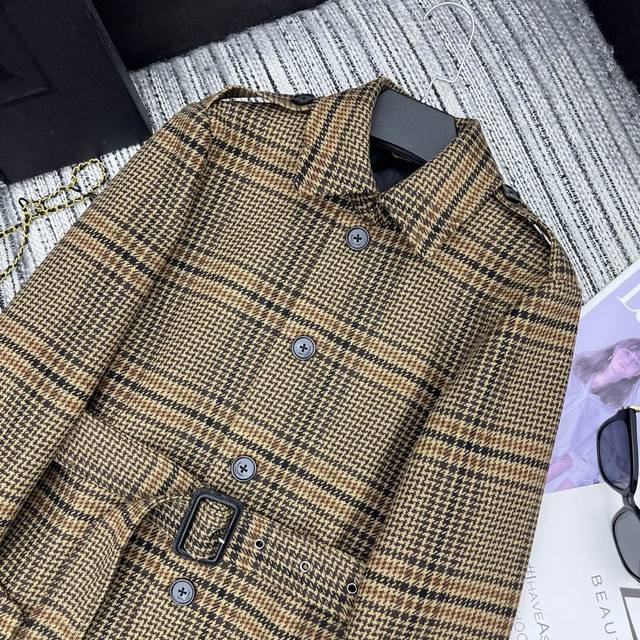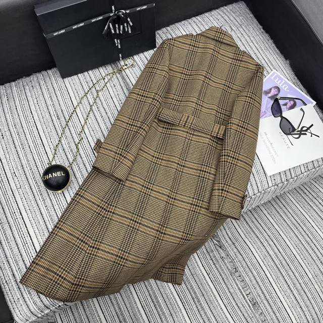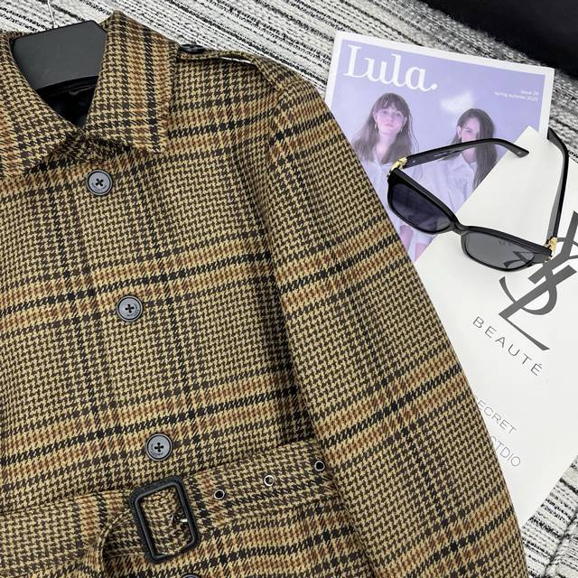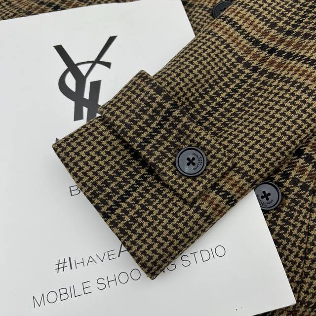 Highly recommend YSL's new houndstooth long lapel coat with waist belt from the 2025 Early Autumn collection. Yb1:1 custom high-end quality. Sml.