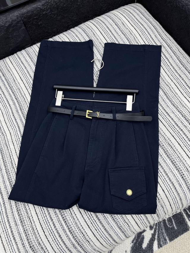 Hot-selling item in stock! Original quality Ysl | 2025 new workwear pocket jeans with belt. A versatile pair of jeans with a design that will flatter your legs. High-end fabric with just the right drape. Show off your long legs. Classic tailoring for a slimming effect. Elongates your figure, conceals excess fat, and creates a slimming effect. This timeless classic is a must-have. Pairs with any style for a stylish look. Extremely comfortable and practical.