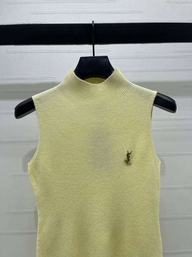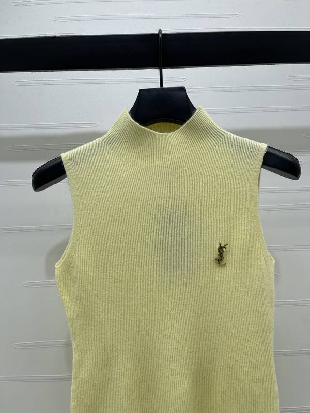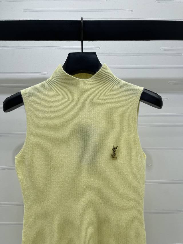 New Arrival! High-Quality Original YSL* 2026 Early Spring Collection! Metal Logo Knitted Vest! Custom YSL wool knitted material, soft, supple, and highly elastic. Crew neck knitted vest with delicate edging at the neckline and cuffs. Comfortable to wear. Fine vertical stripes on the garment. Highly elastic and provides excellent coverage, hugging the body and showcasing your curves. Brooch embellishment. A versatile everyday style! 4 colors! Sizes SM-L3! High-quality bulk order A706B270C DDD