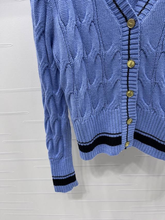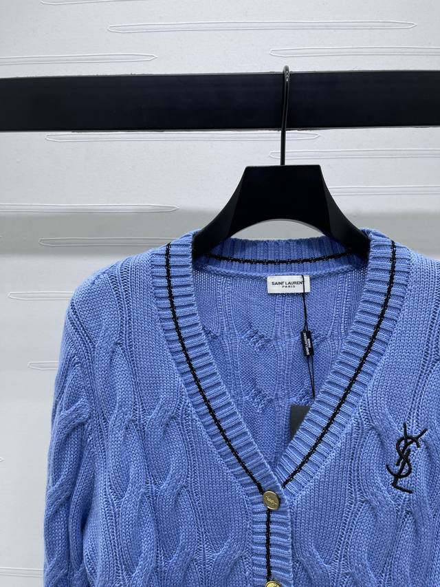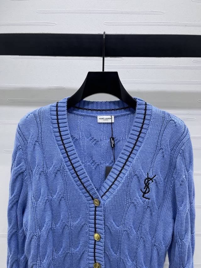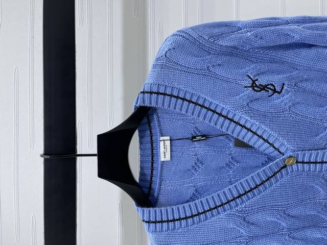 New, original, high-quality Ysl* 2025 Early Fall collection! Cable-knit V-neck cardigan! Custom-made imported wool knit, comfortable and soft, with a noticeable texture that accentuates its gentle temperament. Threaded hems at the neckline and cuffs, and black brand lettering embroidered on the chest complement the brand's signature. The V-neck cardigan's tailoring is versatile, making it a stylish and youthful look. A simple, versatile style for everyday wear in fall and winter! Available in one color! Sizes SM-L3! High-quality, large-volume stock