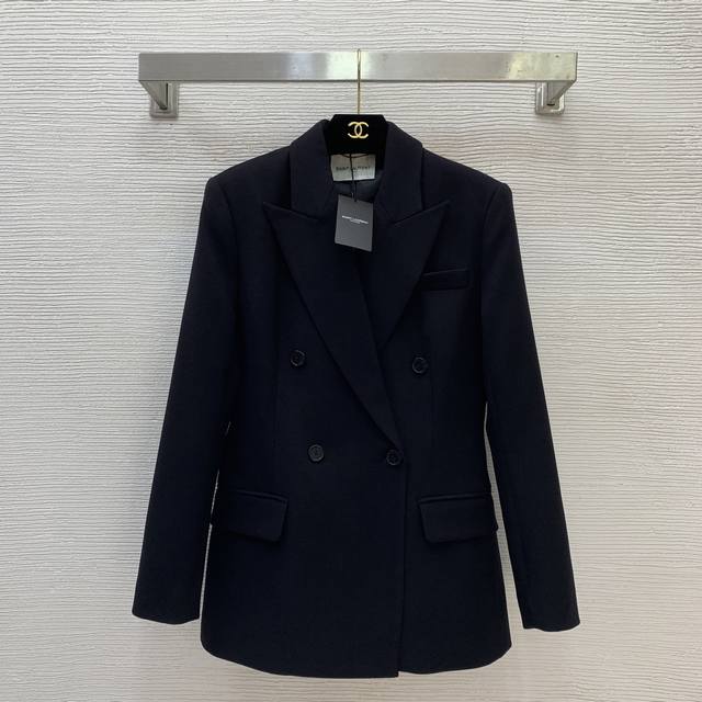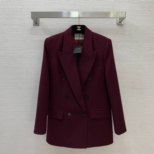 New Saint Laurent (YSL) Suit Jacket - High-end quality wool blend fabric, soft and comfortable! Double-breasted, flap pockets, slim fit, wool suit jacket! Wine red, dark green, black. Size S: Shoulder width 38cm (with shoulder pads), chest 88cm, sleeve length 58cm, jacket length 69cm. (DDD)