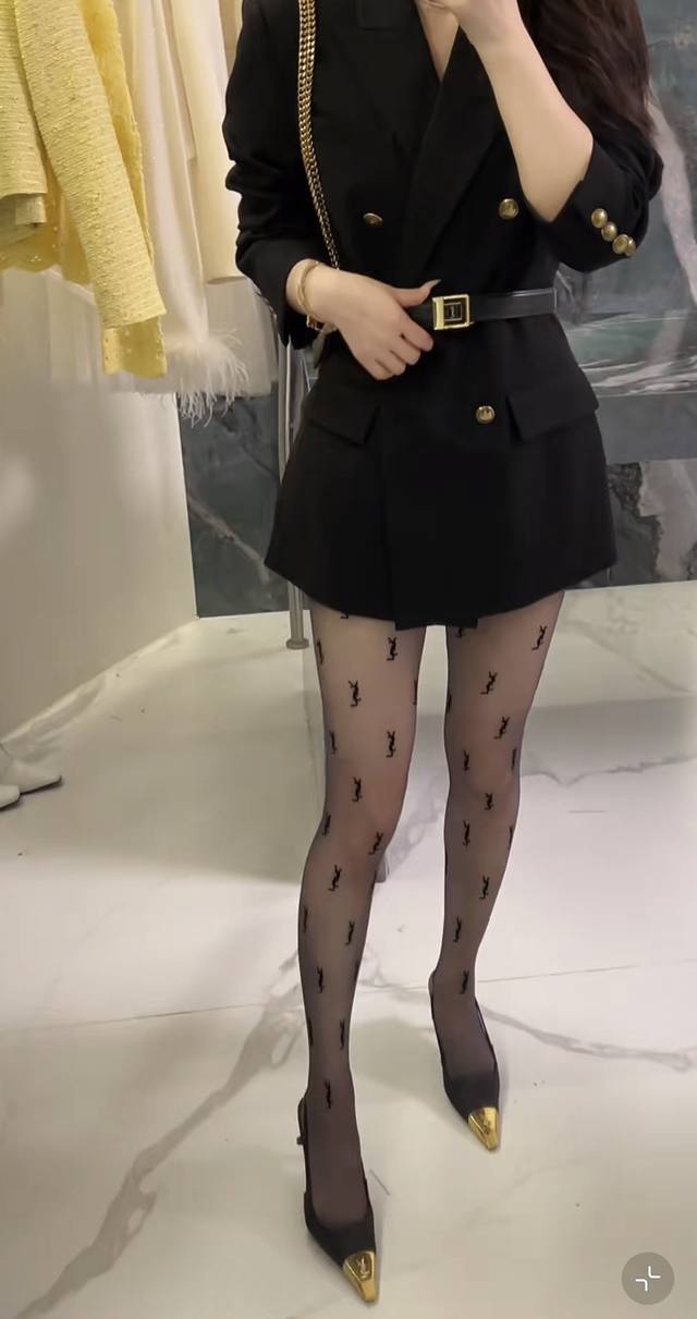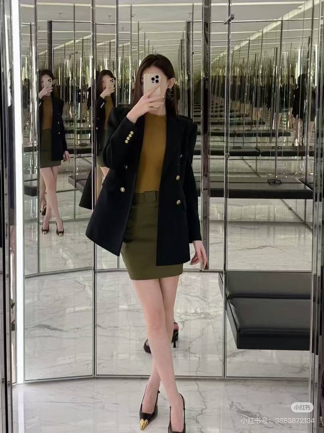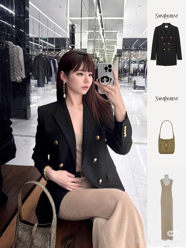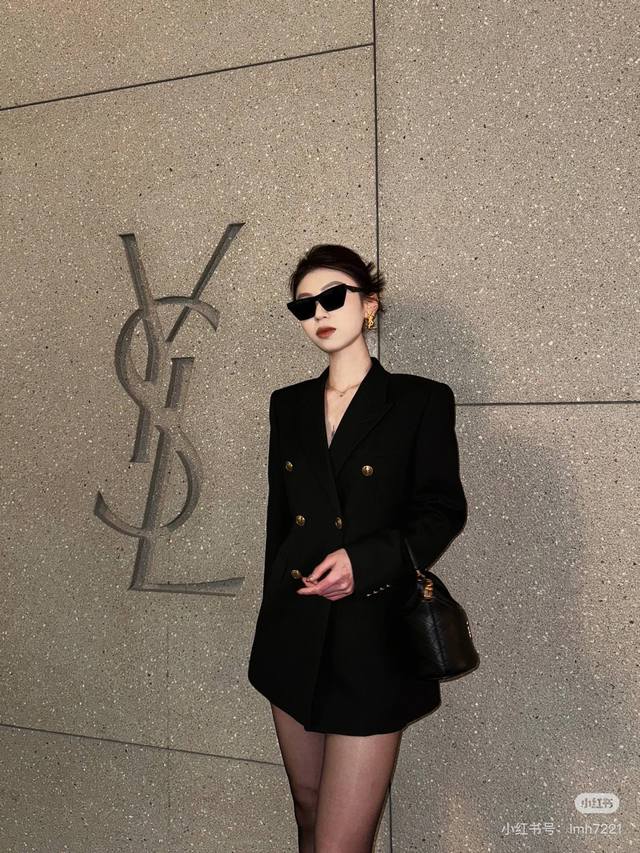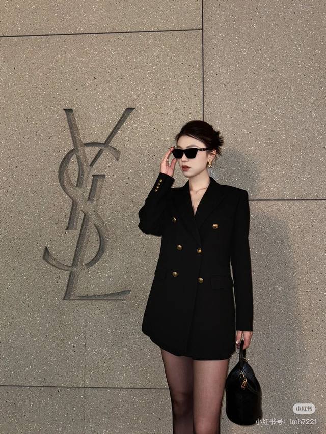 Saint Laurent YSL* New Exclusive Custom High-End European Quality Premium Wool Suit Jacket with Gold Snake Chain Decoration on the Neckline, Antique Bronze Double-Breasted Buttons, Flap Pockets, Elegant and Versatile, Comes with a Belt! Black, Size S: Shoulder Width 40cm, Chest 96cm, Sleeve Length 57cm, Length 72cm (DDD)