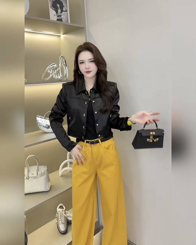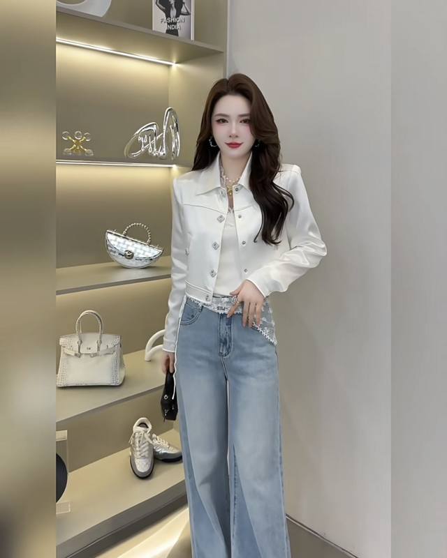 Saint Laurent (YSL) New High-End Boutique Custom Imported Textured Acetate Fabric, Silky Smooth and Comfortable! Simple and Stylish Short Collar Long-Sleeve Jacket with Letter Logo and Square Buttons! White, Black, Size M: Shoulder Width 40cm, Bust 98cm, Sleeve Length 58cm, Length 46cm. (