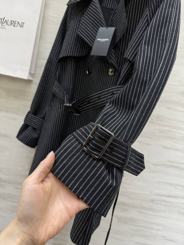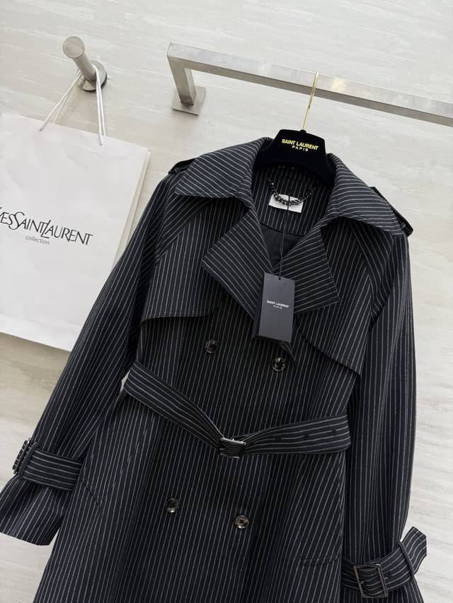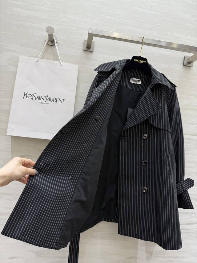 Ysl2 autumn and winter new lapel striped windbreaker jacket easily unlocks the high-end heroine outfit, high-quality customization, spot first release Size: SML Xl S size chest: 100, length: 81