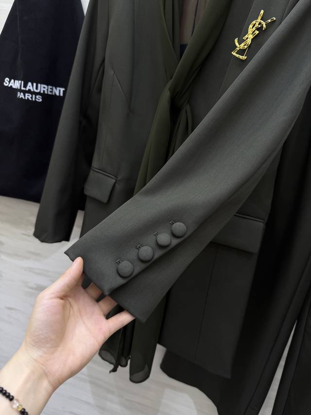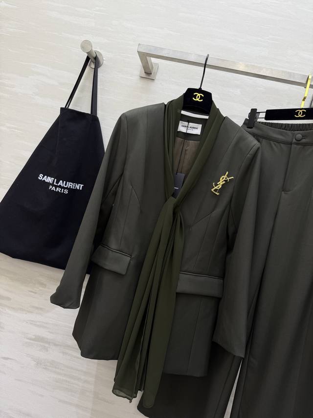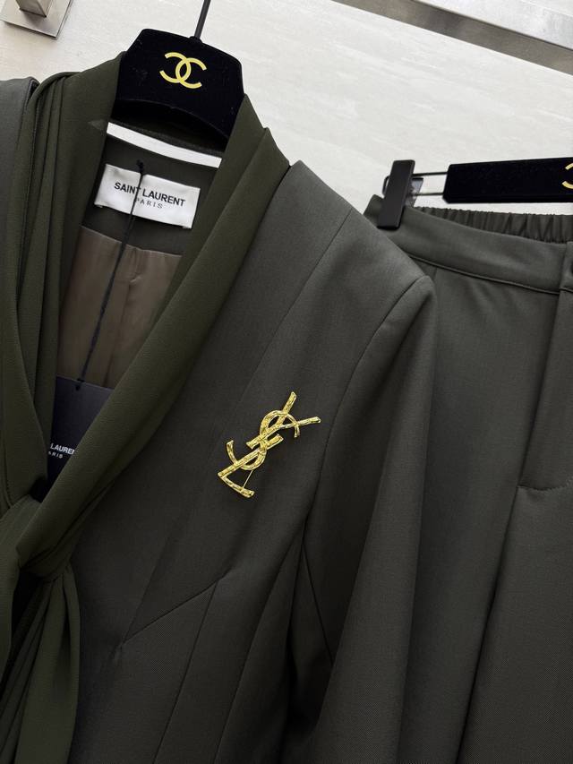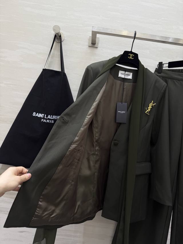 Ysl2 New High-Quality Custom-Made Suit Set, In Stock, First Release. Sizes: S, M, L, XL. S size: Shoulder width: 40cm, Chest: 98cm, Jacket length: 75cm, Pants elastic waist: 64cm, Pants length: 99cm. (DDD)