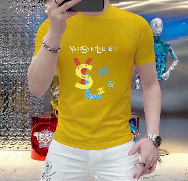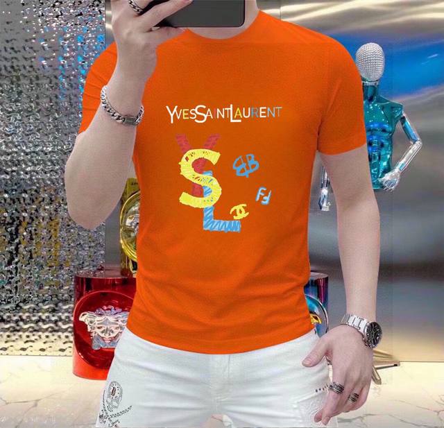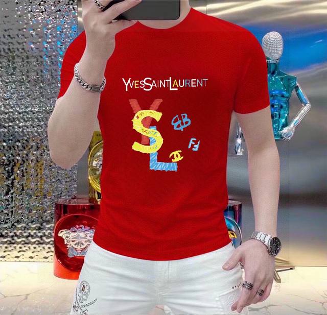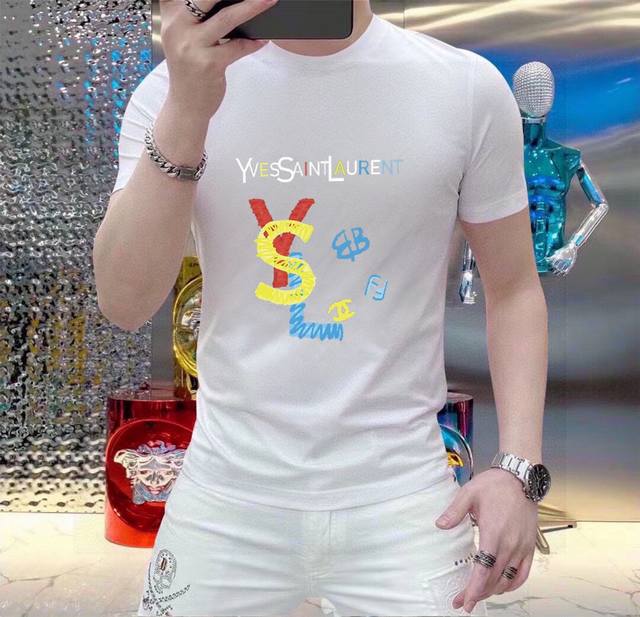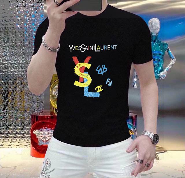 Original YSL Saint Laurent men's casual short-sleeved T-shirt, a Spring/Summer