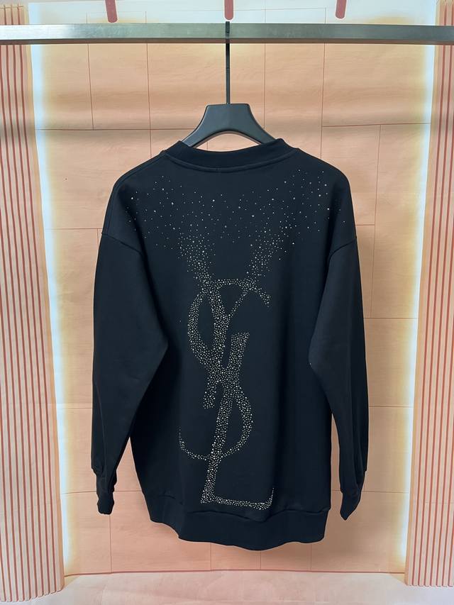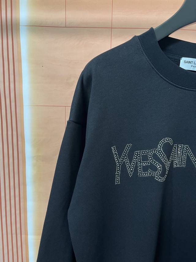 YSL New Heavy-Duty Rhinestone Crew Neck Long-Sleeve Sweatshirt