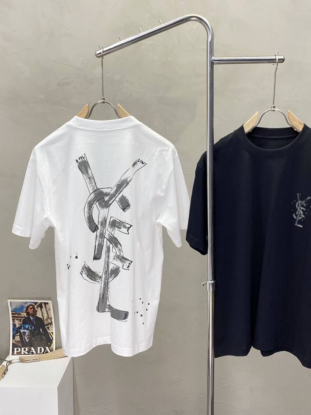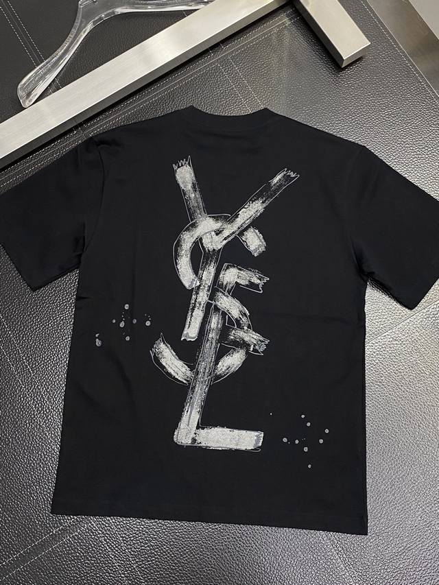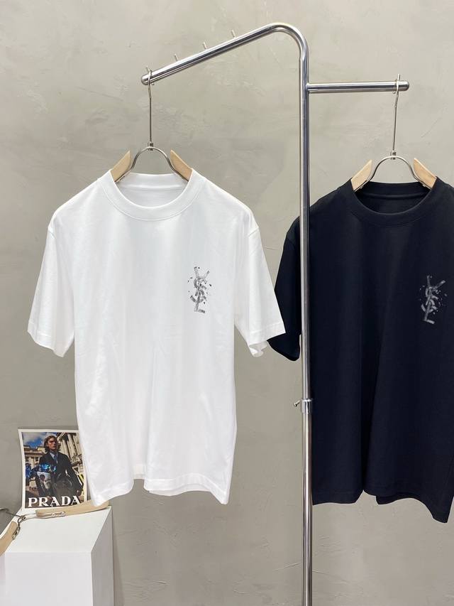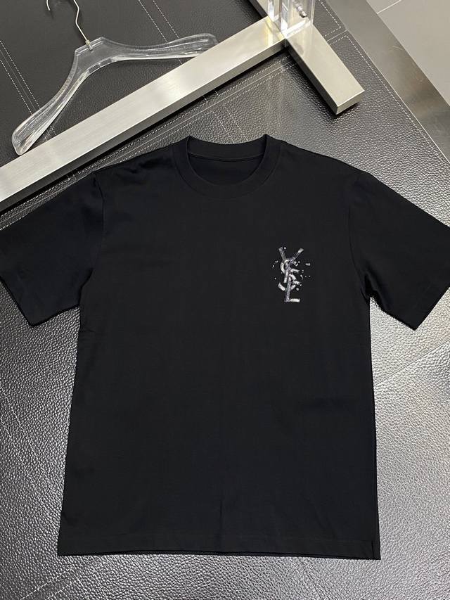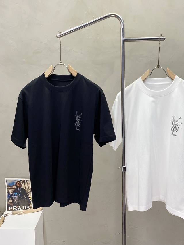Saint Laurent exclusive new original men's casual short-sleeved high-end customization high-end version fashionable and versatile popular imported fabrics feel ultra-soft and delicate skin-friendly and comfortable to wear high-end boutique OEM P fine workmanship is very good on the upper body must-have items for men three complete sizes M-3Xl