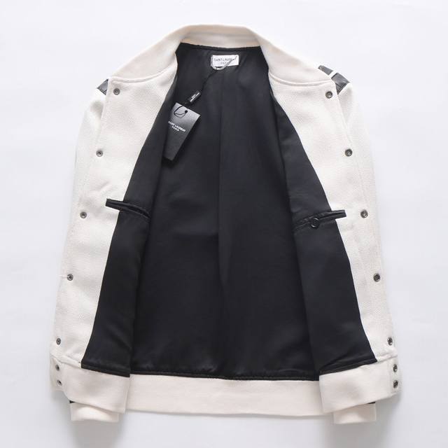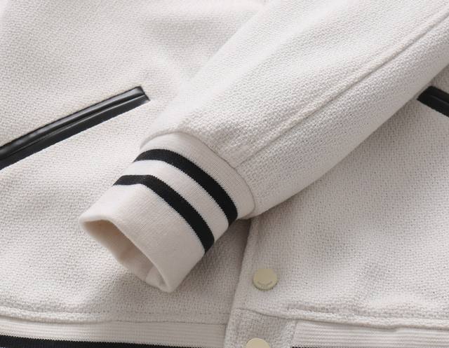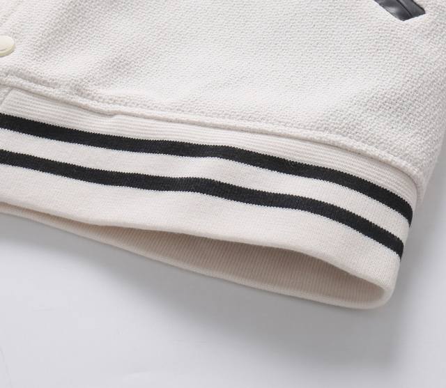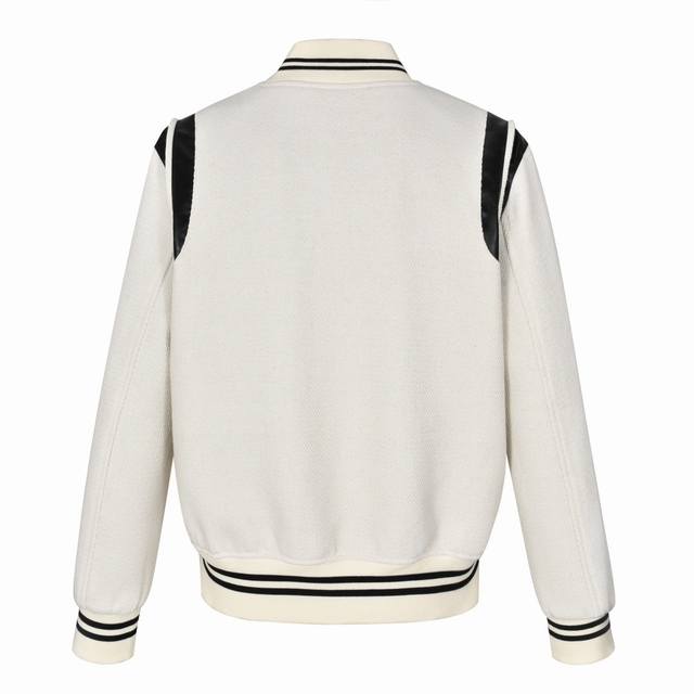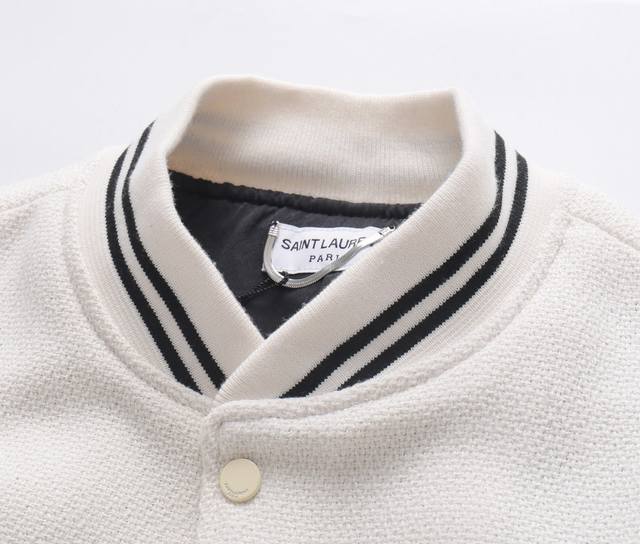 Saint Laurent Paris SLP Classic Black and White Baseball Collar Jacket. Original 1:1 replica, highest quality version online, 2 months in the making. Made with pure wool fabric, jacquard ribbed knit