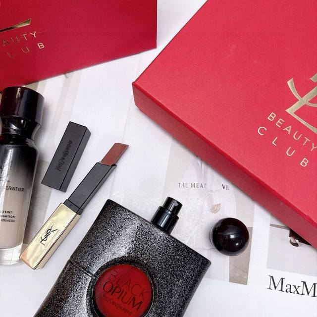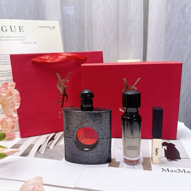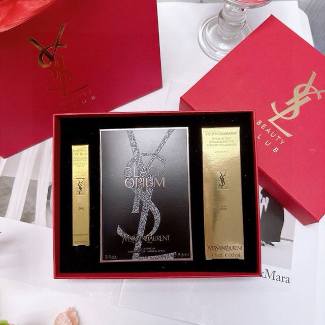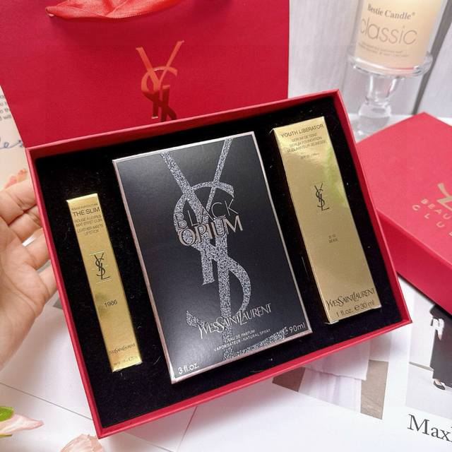 Saint Laurent Starry Sky Anti-Aging Goddess Three-piece Gift Box New Year Formal Edition Ysl Small Gold Bar 30# Black Opium Perfume Goddess Foundation
